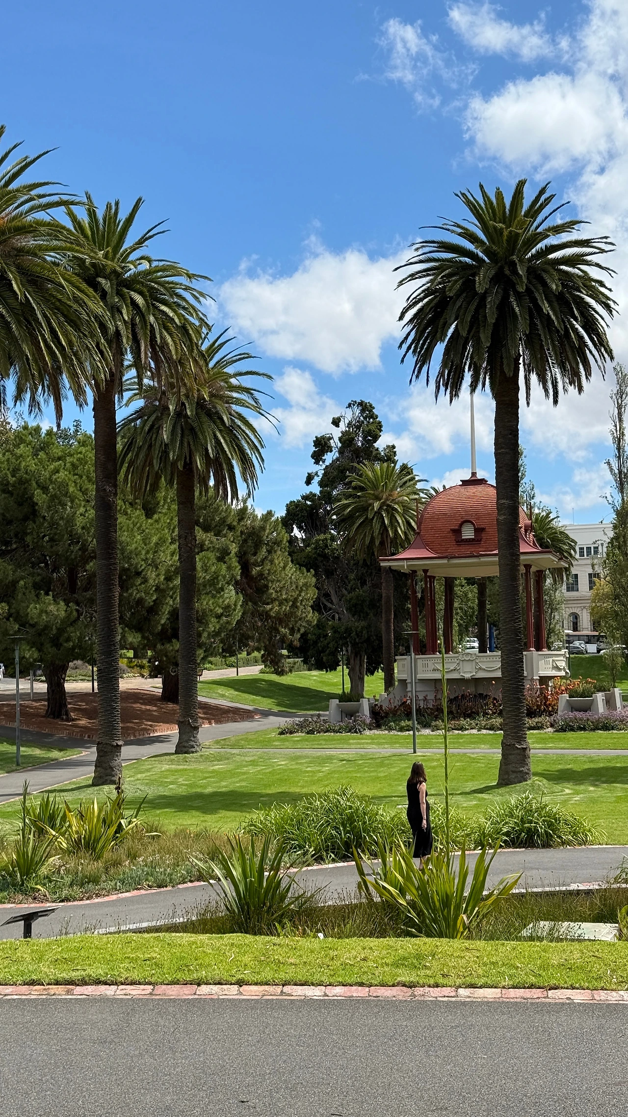 Colac Botanic Garden은 1868년 조성되어, 호주 식민지 시대의 조경 미학을 그대로 간직한 전통 있는 정원입니다. 빅토리아 주 정부 조경 프로젝트의 일환으로 만들어졌으며, 19세기 영국식 가든 개념을 반영하면서도 남반구 특유의 수목들을 함께 심어 독특한 식물 다양성이 형성되었다고 합니다. 지금도 여전히 수령 100년이 넘는 고목, 드라마틱하게 늘어선 야자수 라인, 그리고 잔디 위로 드리운 넉넉한 그늘은 시간이 쌓인 풍경 자체를 보여줍니다.