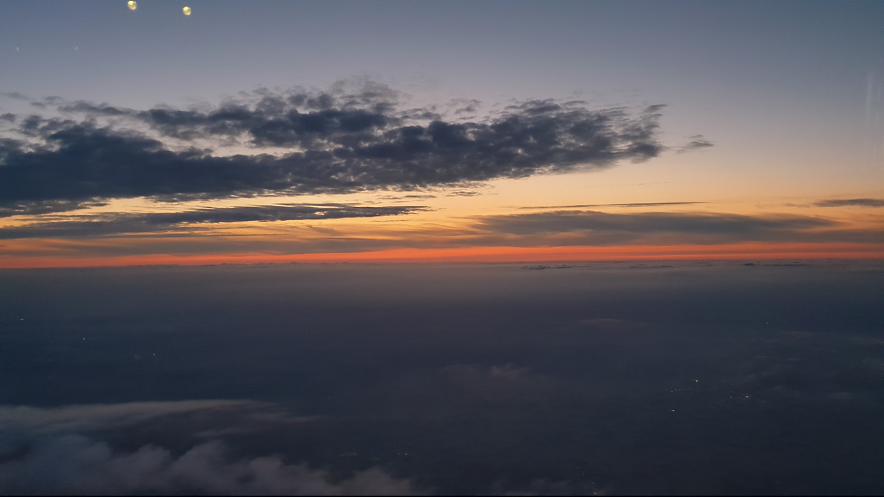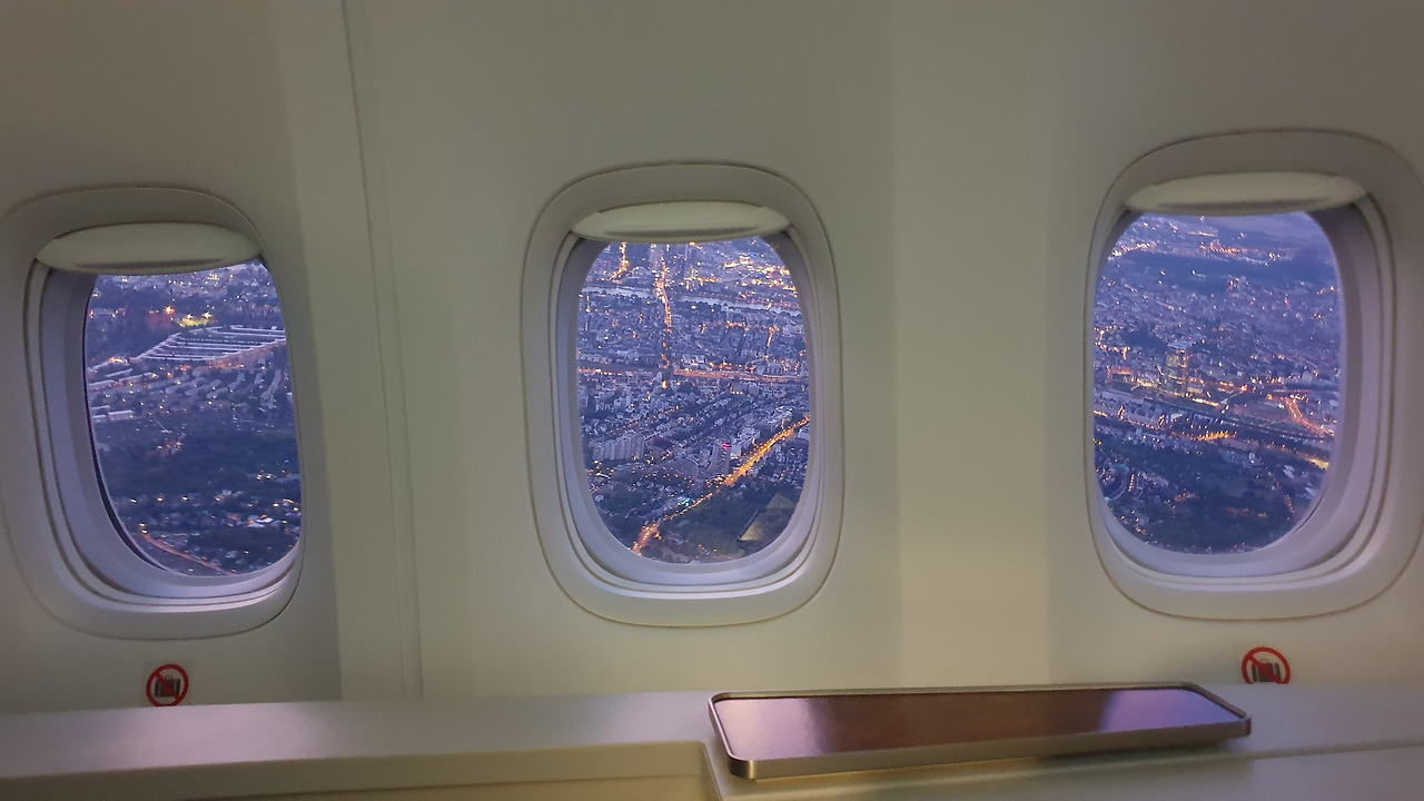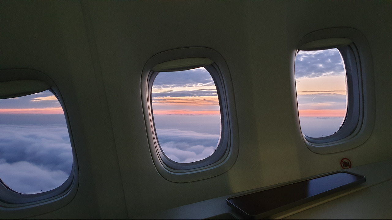 창 밖으로 보는 노을 역시 멋집니다. 짧지도 길지도 않았던 여행을 마치고 돌아가는 여정과 어울리는 차분하고 예쁜 색감의 하늘입니다. 노을을 보면서 가족과 지인들도 이런 좋은 경험을 꼭 해볼 수 있게 되기를 기원해 보았습니다. (이 글을 보고 계신 독자 분도!)