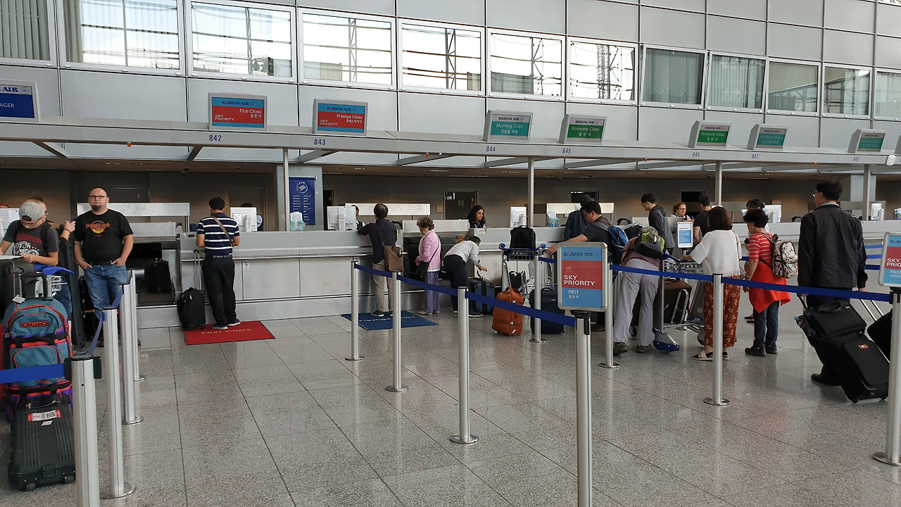 프랑크푸르트 시내와 공항은 정말 가까운데, 전철로 15분 정도 걸렸습니다. 1터미널에 도착해서 셔틀 트레인을 타고 금방 2터미널로 도착합니다. 대한항공 카운터에 정확히 3시간 정도 전에 도착해서인지 아직은 체크인 줄이 길지 않습니다.