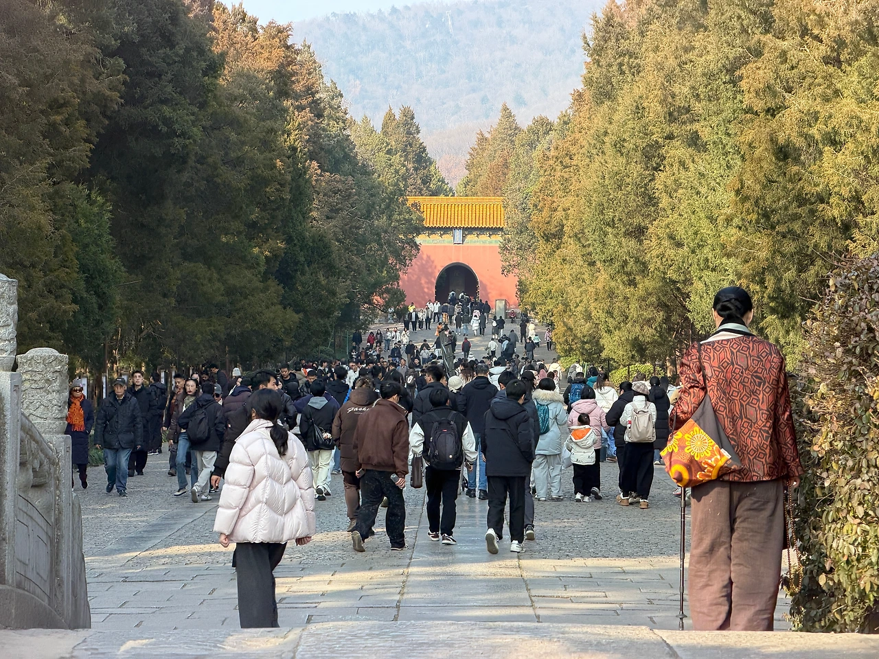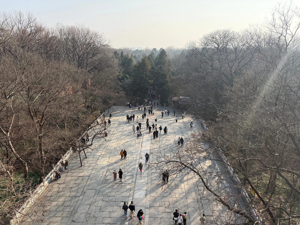 DiDi를 타고 중산릉풍경구에 내려서 꼭 셔틀을 타시길 추천 드립니다. 플라타너스 나무 길이 멋져서 나무가 한창일 때는 사진 찍으려는 사람으로 어마어마하다던데요, 나뭇잎 없을 때는 힘 덜 들이고 입구까지 가는게 체력 안배에 도움이 됩니다.