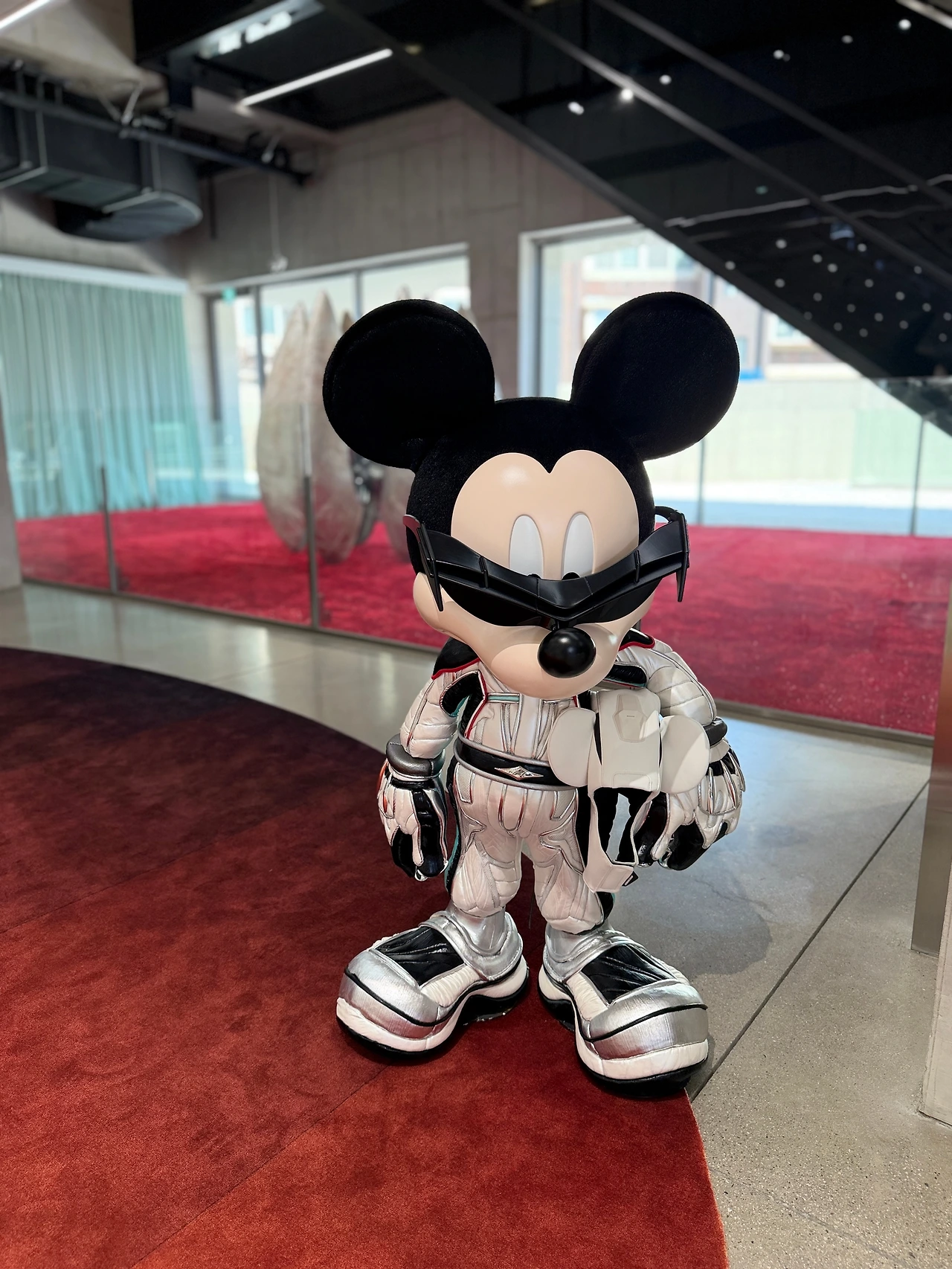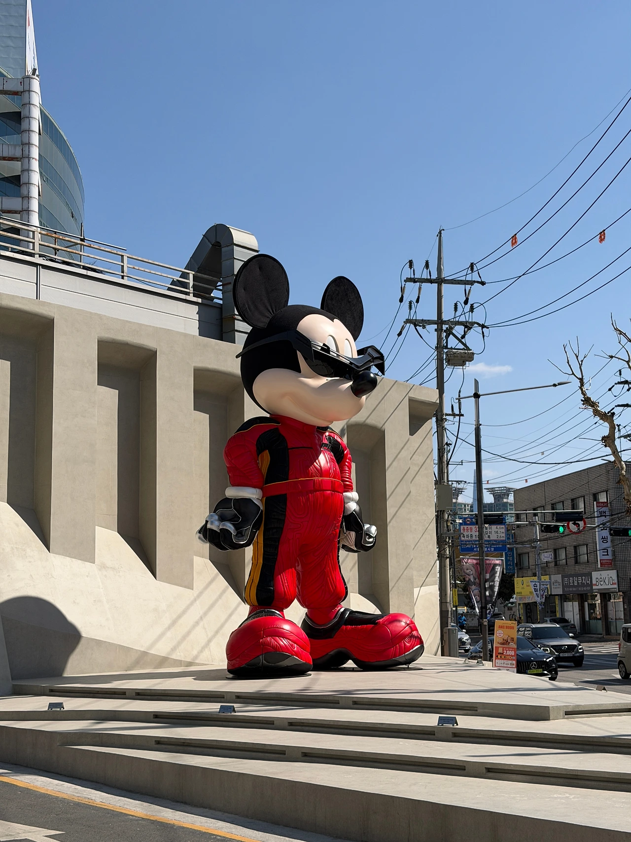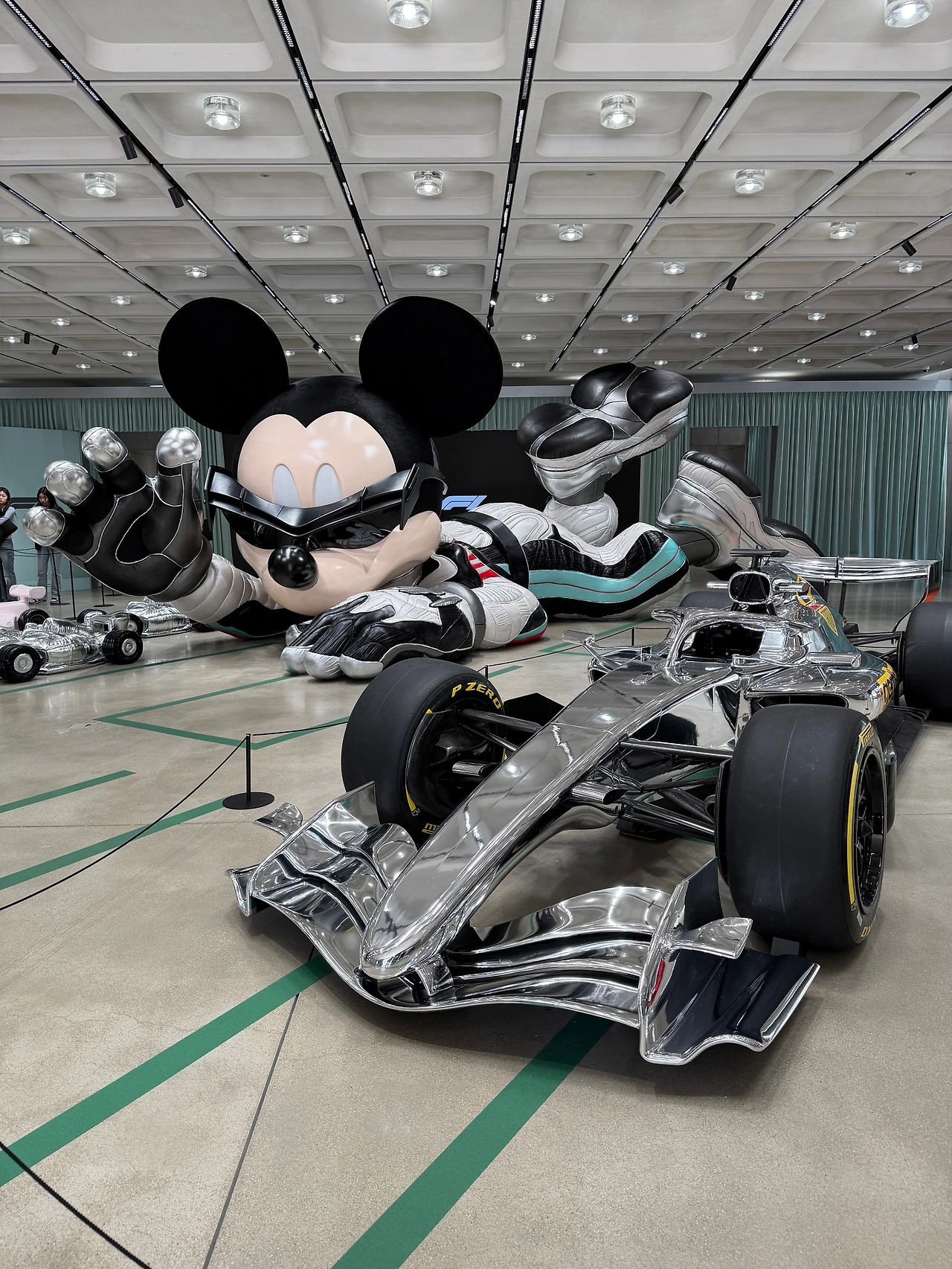 1층에 들어서자마자 커다란 미키가! F1 머신과는 절대 안 어울릴거 같은 미키마우스인데 이렇게 보니 재밌긴 합니다. 미키가 쓰고 있는게 새로 발매한 디즈니 콜라보 선글라스인데요 ㅋㅋㅋㅋ 항상 물건살 때 10년은 사용할 걸 사자 주의인 아재에게는 저걸 누가 사냐 싶은 템... 미키가 쓰고 있을 땐 멋집니다 ㅋㅋ