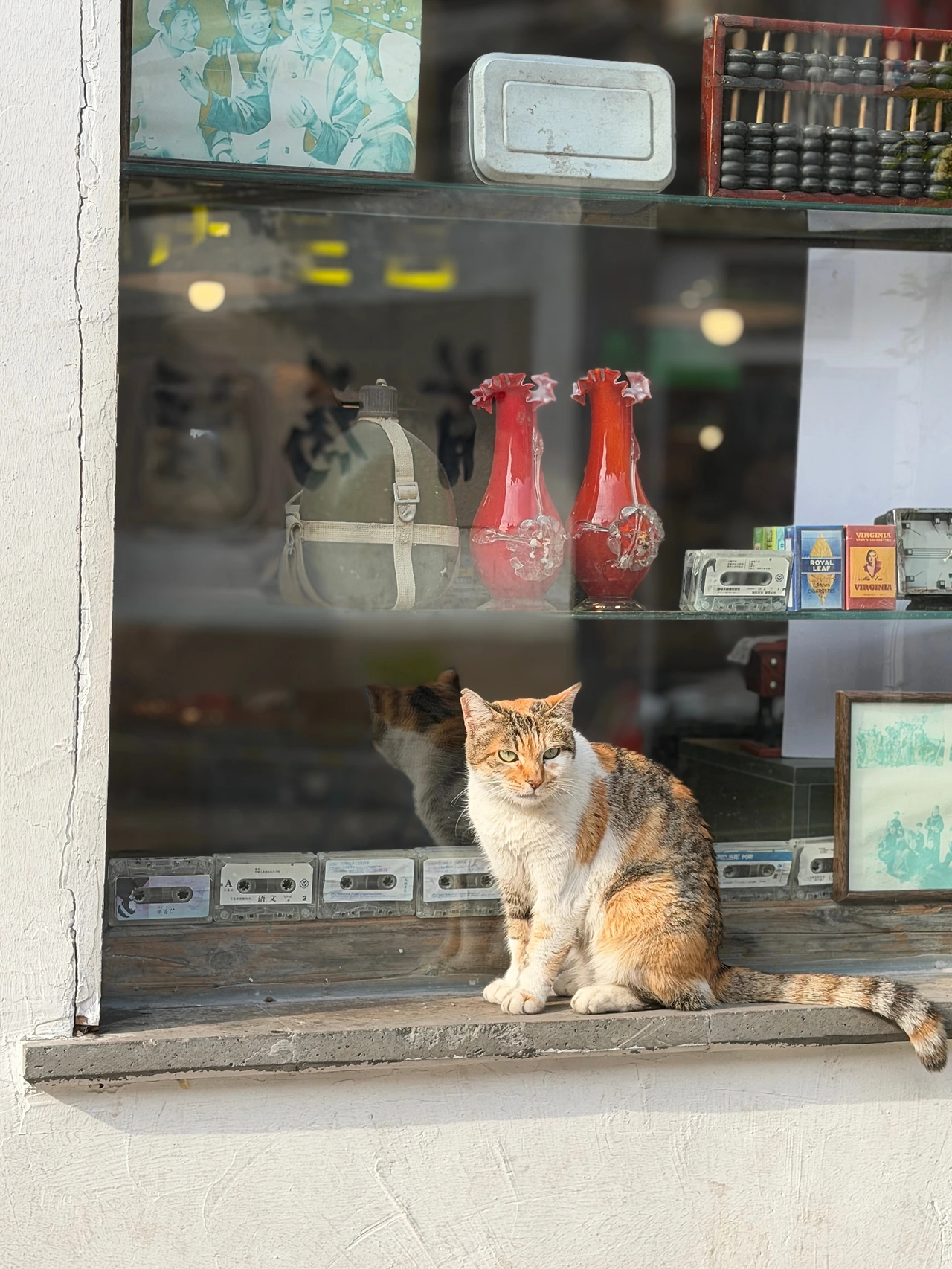 한가롭게 볕을 쬐고 있는 고양이도 귀엽고, 혜산고진 마을 모양 20위안 아이스크림도 아이가 좋아했어요.
