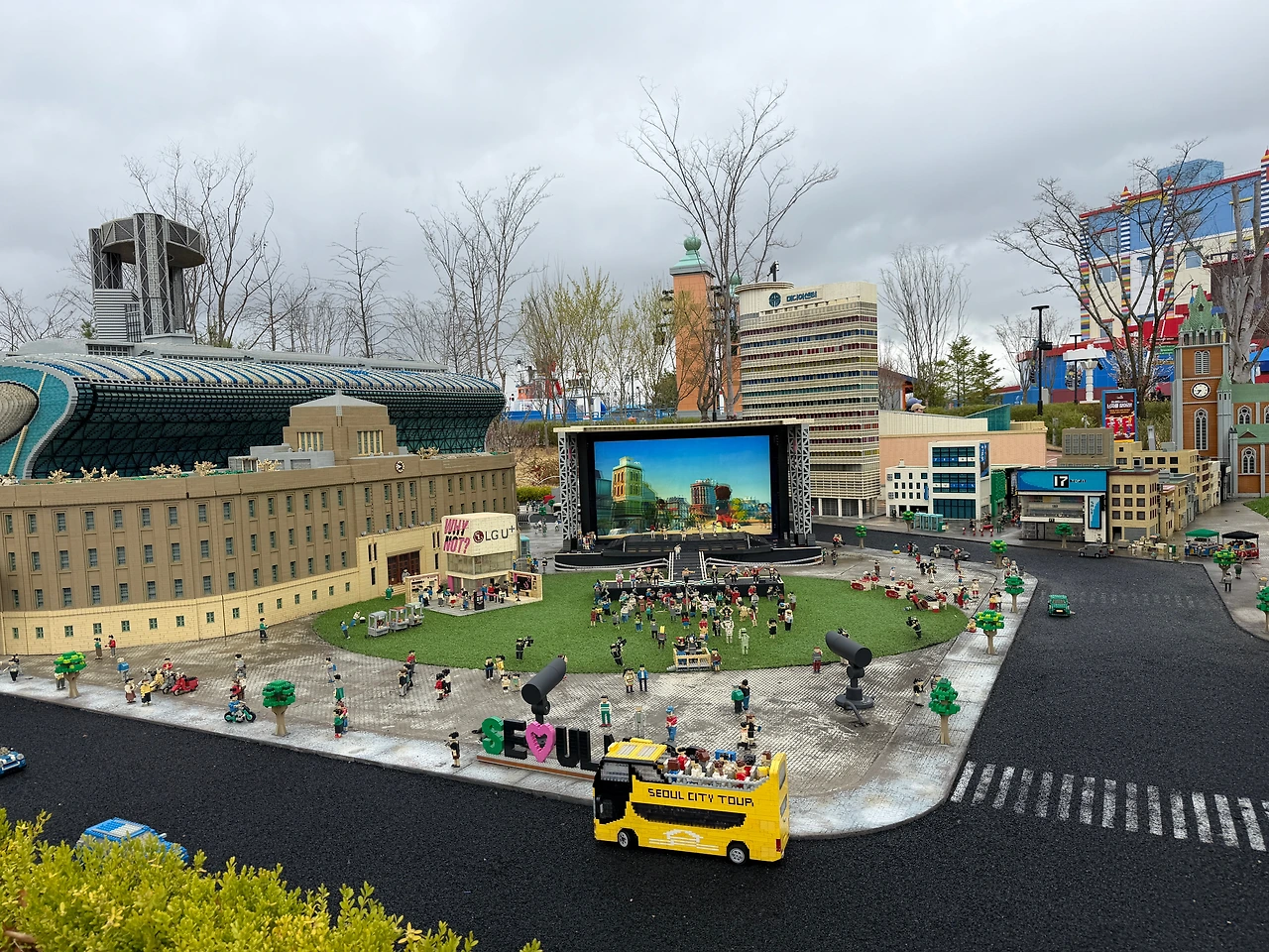 레고랜드 중앙에 꽤 면적을 많이 차지한 미니랜드. 구경하는 재미가 쏠쏠해요. 노란색 서울 시티투어 버스가 자동으로 계속 움직여서 아이가 신기하게 계속 쳐다보던...