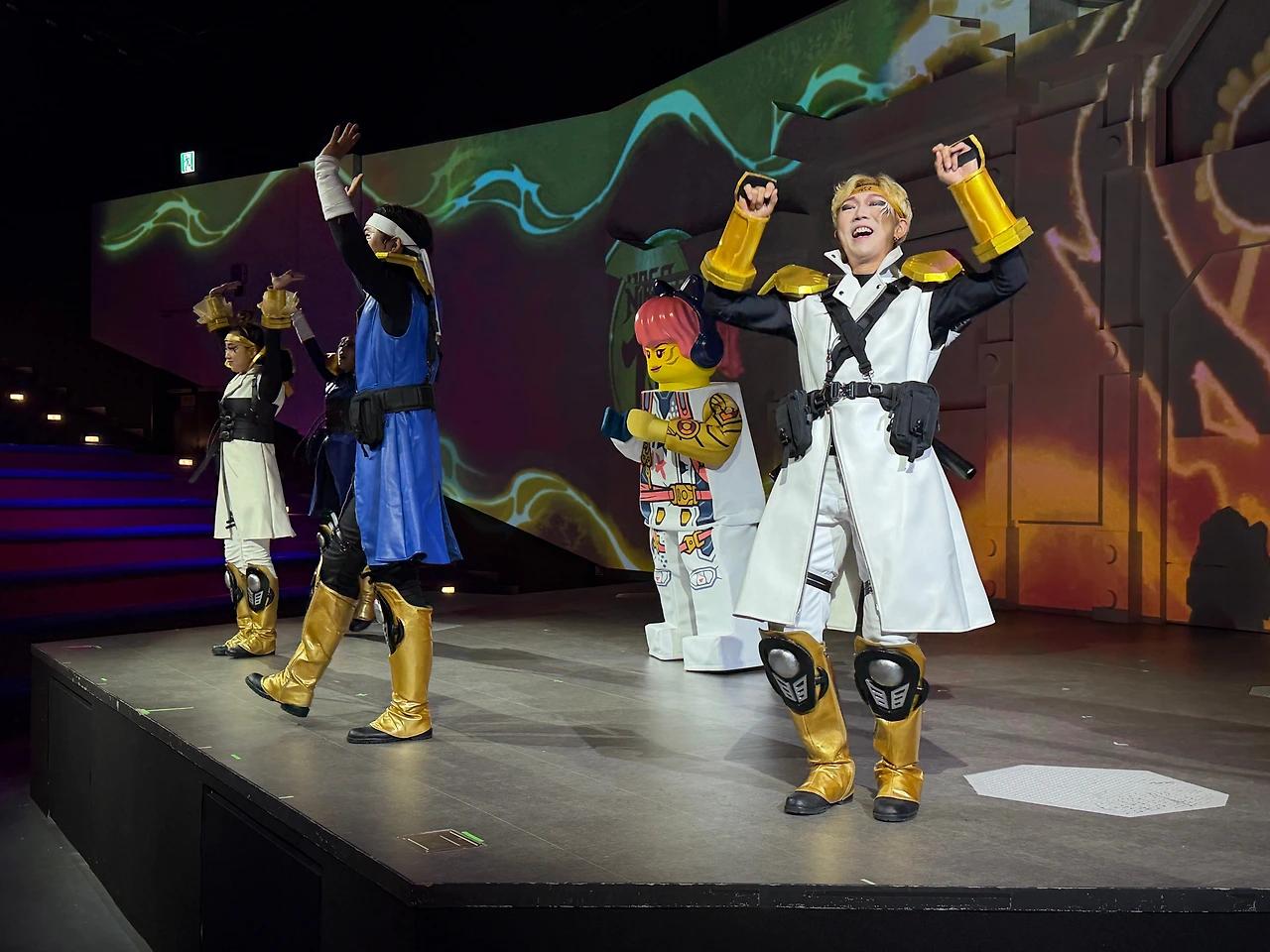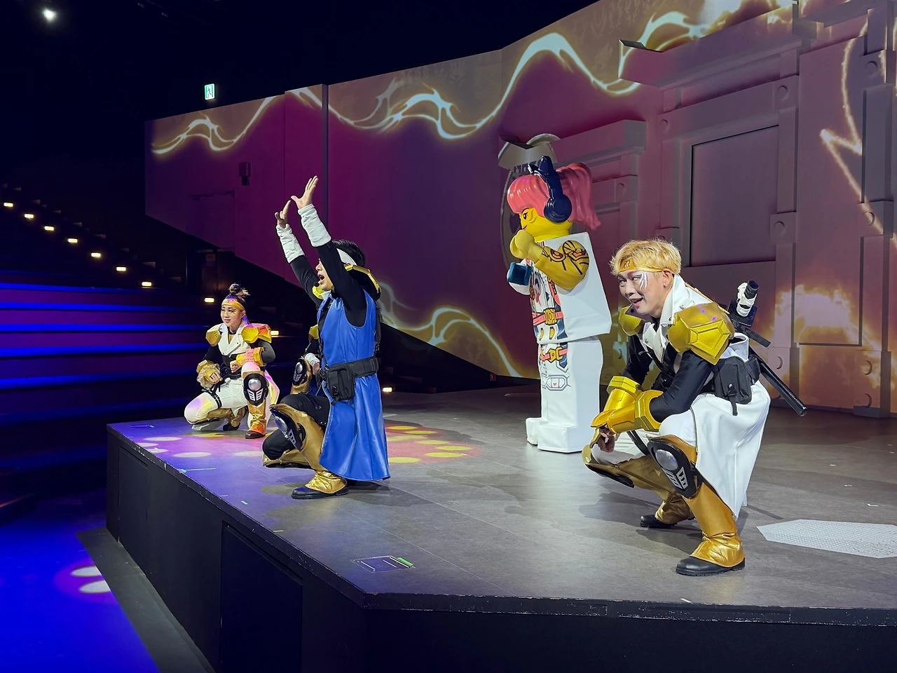 11시에 시작된 닌자고 캐릭터 공연! 비가 안 왔으면 입구 근처 닌자고 스테이지에서 했을텐데 따로 실내 극장으로 변경되어 진행되었습니다. 관객은 저희 포함 30명 정도 아담했던... 그래도 열심히 춤 추고 분위기 돋궈주시던 스태프 분들!