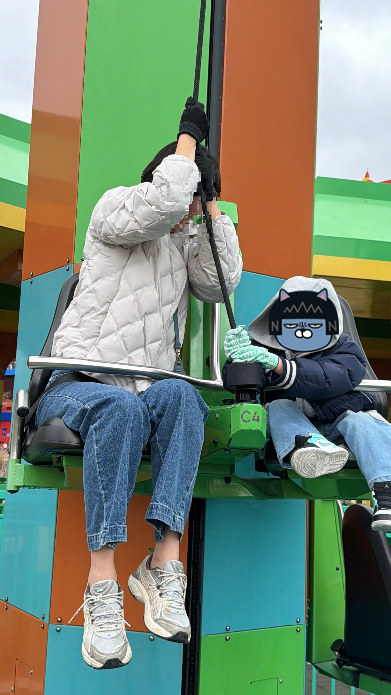직접 장갑 끼고 줄을 당겨야 올라가는 멍키 클라임! 아이는 엄마랑 한 번, 아빠랑 한 번 이렇게 두 번 탔어요 ㅋㅋ 은근 힘 쓰는데 재밌었어요.