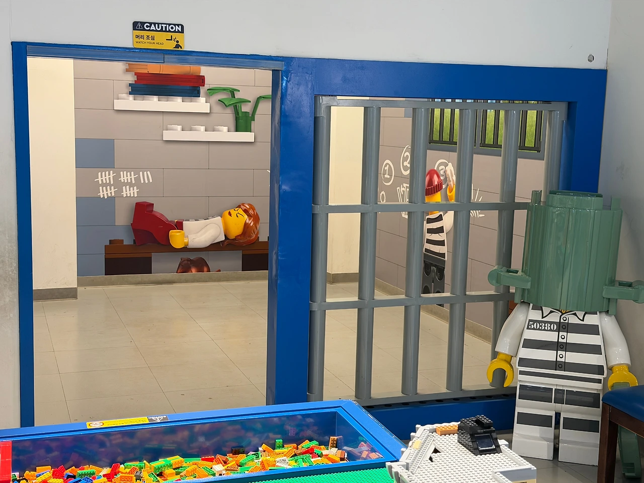 시티 레스토랑 맞은편 시티 경찰서는 안에서 브릭 조립을 실컷 할 수 있는 곳이에요. 감옥도 코믹하게 있고 재밌어했어요.