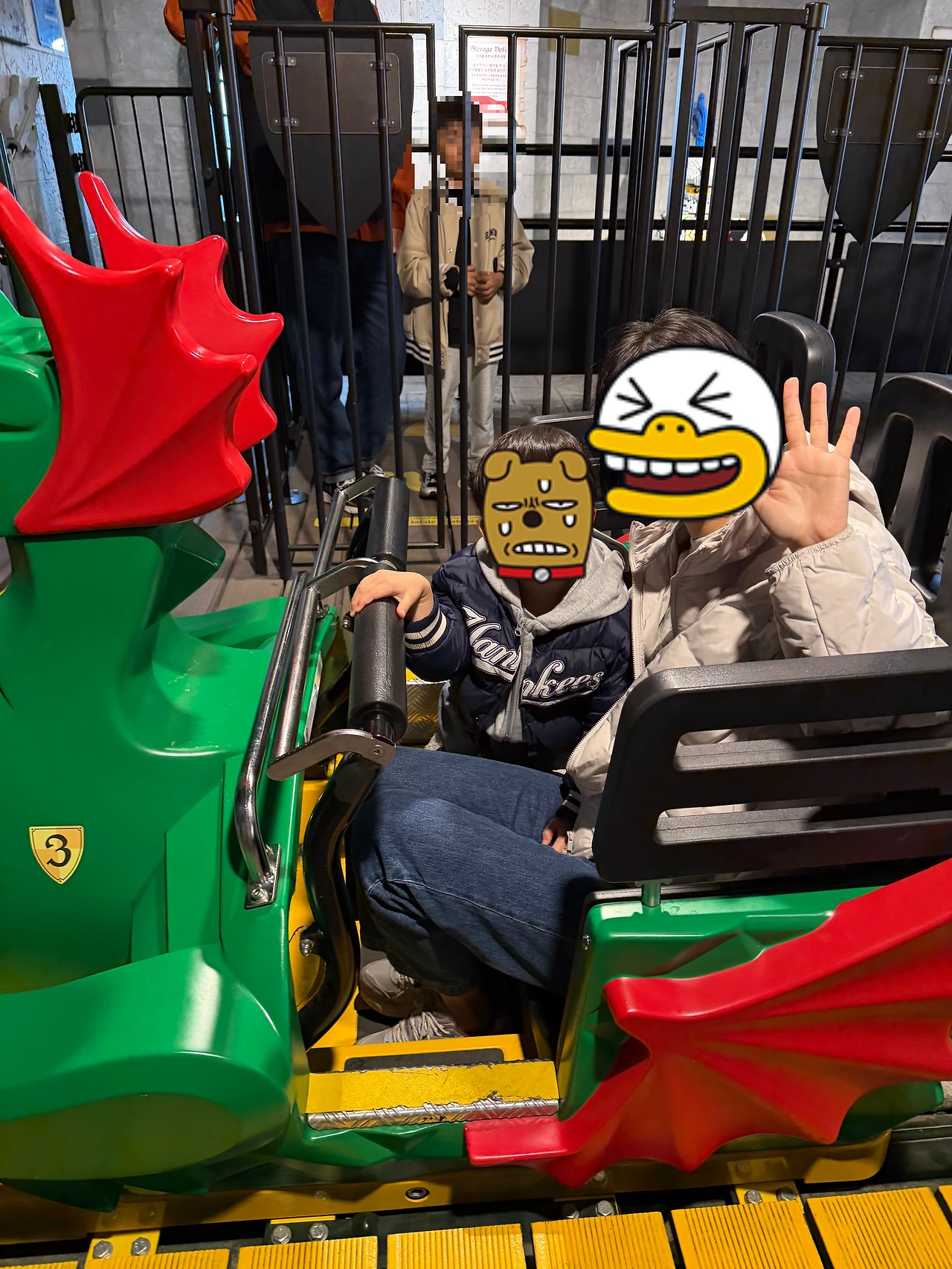 꽤 빠르고 스릴 있었던 드래곤 코스터. 아이가 옛날처럼 떡실신해서 울고 불고 하진 않았지만 살짝 혼이 나갔습니다 ㅋㅋㅋ