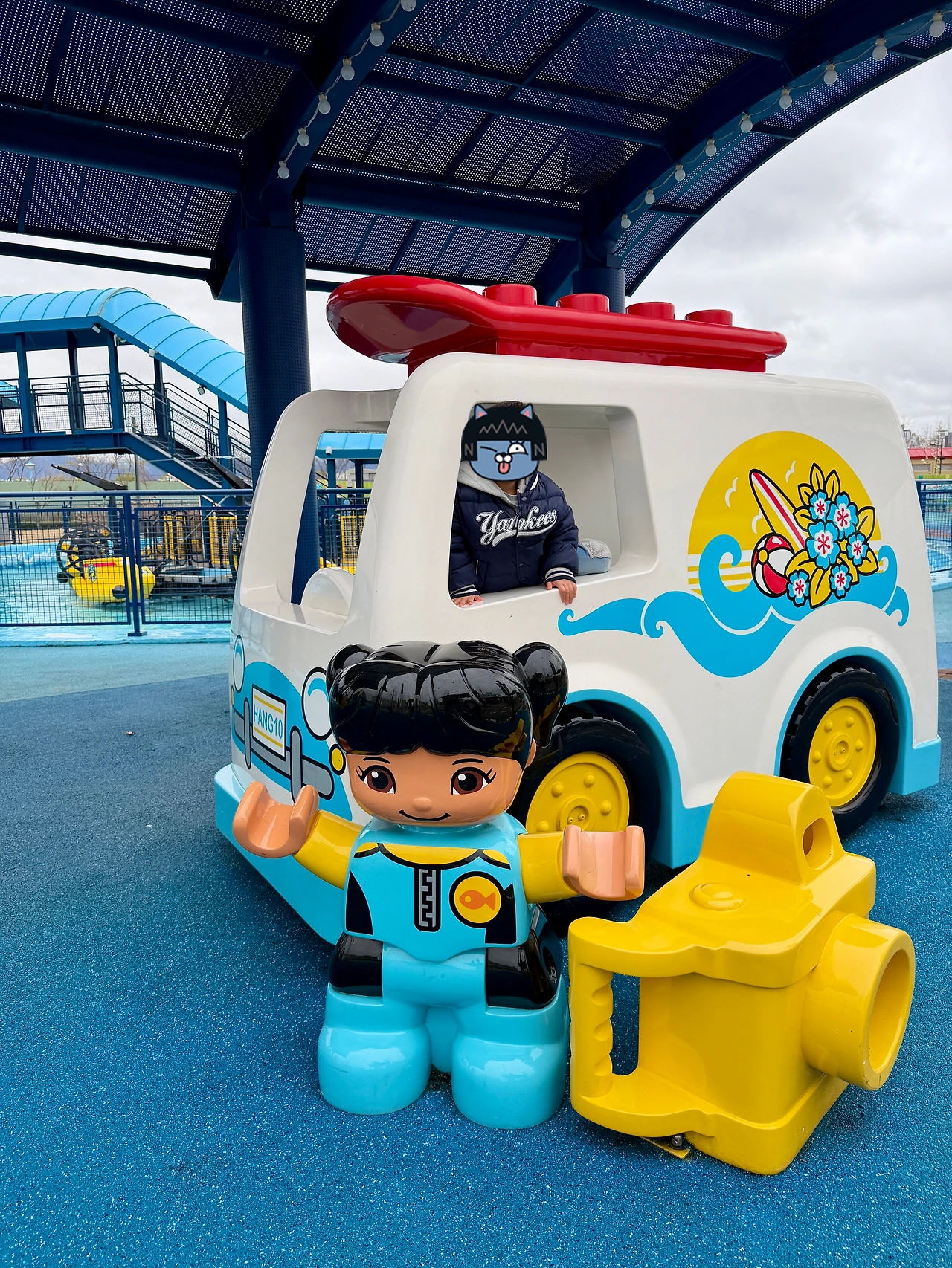 기구는 안 기다리고 바로바로 많이 탔는데 시간이 금방 가더라구요. 닌자고 구역은 아예 못 가고 정문 근처 실내 기구인 팩토리 어드벤쳐 라이드 타러 왔어요. 대기 구역도 아기자기하게 잘 해놨고, 어트랙션 자체도 아이가 좋아하게끔 잘 만들었더라구요. 2번이나 탔습니다~!