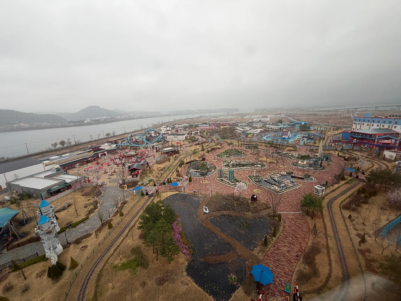 금요일 서울 북서쪽에서 8시 10분에 출발해서 정확히 2시간 만인 10시 10분에 레고랜드 주차장에 도착하였습니다. 전날 일기예보로는 새벽까지만 비오는 것으로 되어 있었는데 2시간 내내 꽤 많은 비가 와서 걱정이 되기 시작했습니다.