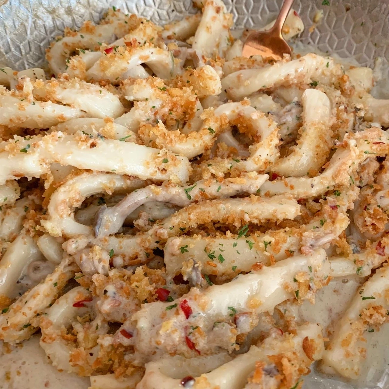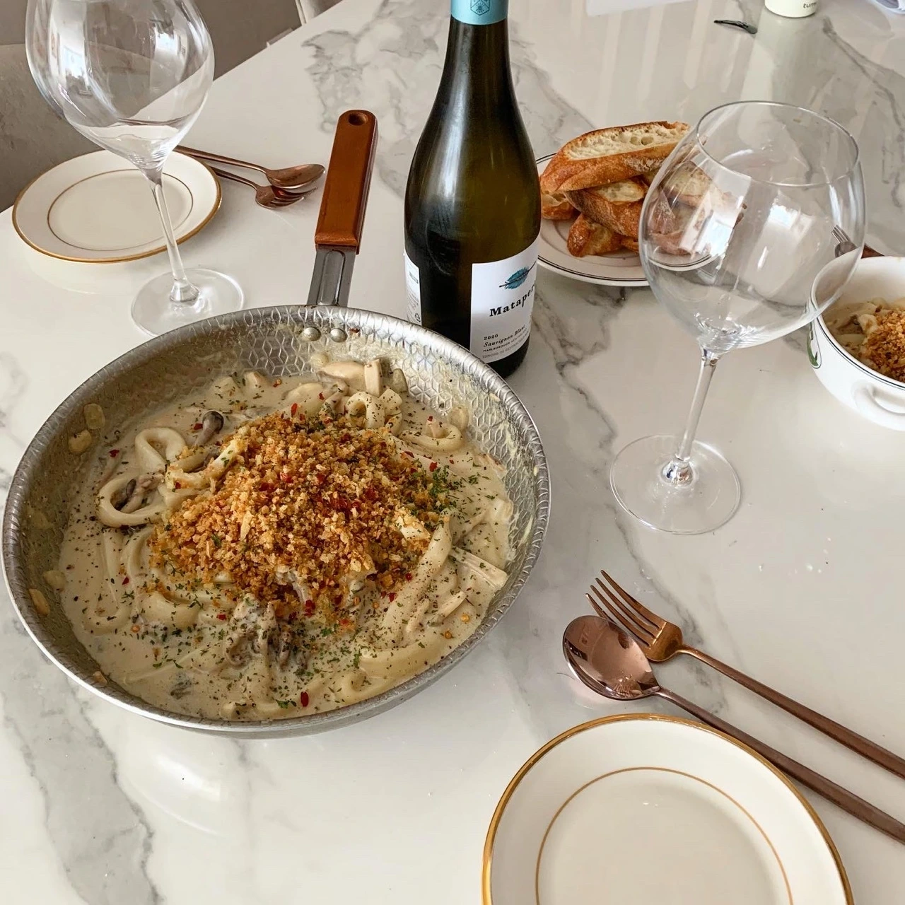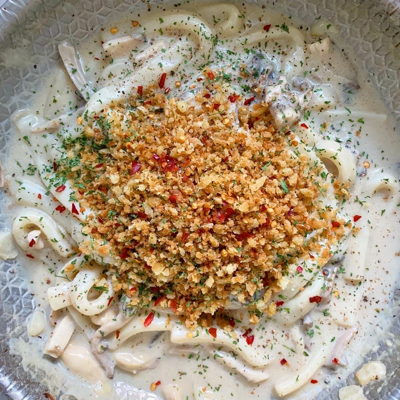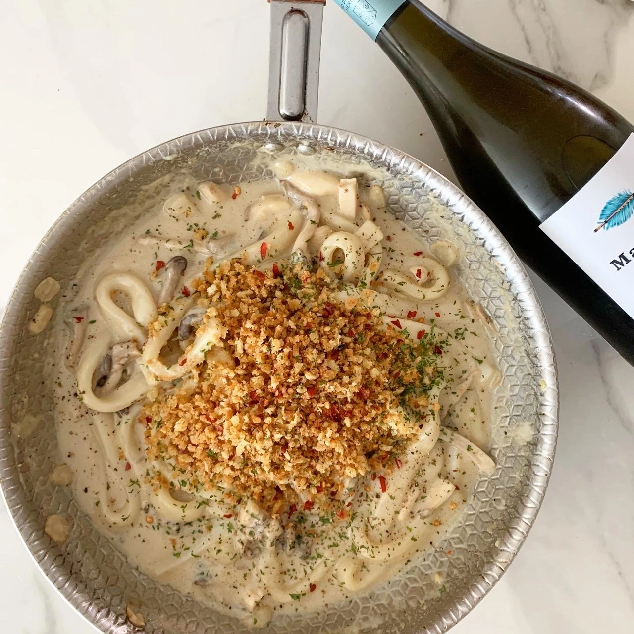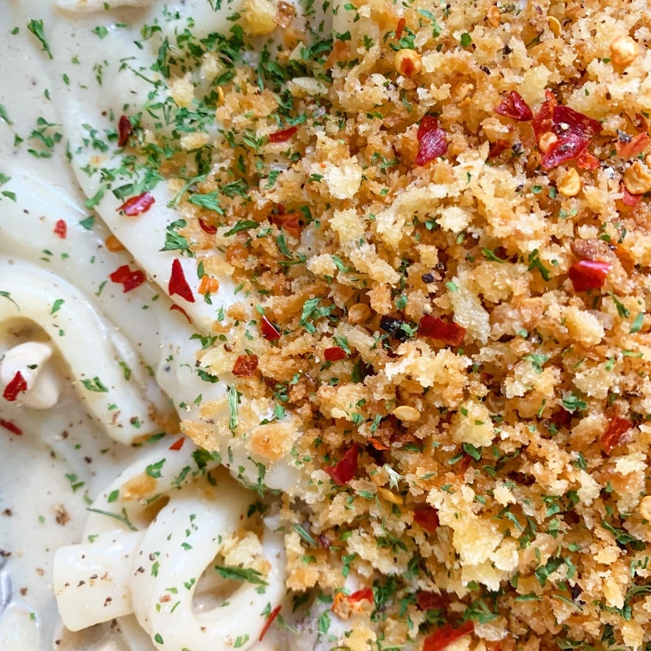 6. 미리 구워놓은 크럼블을 파스타에 곁들이고 가니쉬를 한다.