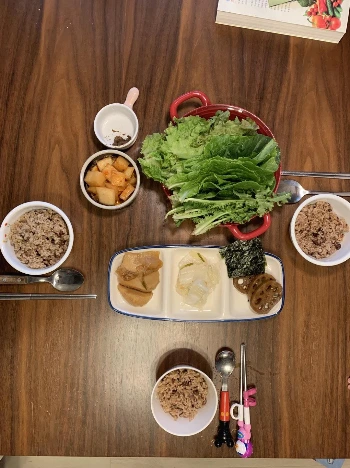 우리나라의 대표음식이 언제부터 치킨이 되었는지 모르겠다. 정말 안타깝다. 위에 열거한 모든 식재료는 우리나라에서 풍성히 나는 음식들이다. 특히 제철에 나오는 채소들은 그 맛과 풍미가 너무나 뛰어나다. 또한, 채식을 하며 내가 감탄을 마다하지 않았던 점은 한국의 식재료는 각 각의 개성이 정말 뛰어나다는 점이다. 어느 식재료 하나도 비슷한 게 별로 없다. 그래서 같은 양념을 해도 그 맛과 풍미가 정말 다르다. 그래서 오히려 음식 하기에 편하다. 예를 들어 시금치와 쑷갓을 똑같이 국간장과 소금으로 맛을 내면 전혀 다른 음식이 된다. 시간도 절약되고 돈도 절약되지만 맛은 다양해지는 마법과도 같은 한국의 식재료다. 뿐만 아니라 우리나라 채소는 억센 것들을 빼놓고는 대부분 쌈으로 즐겨도 된다. 쌈과 두장(고추장, 된장)만 있으면 맛 좋은 식사를 할 수 있다. 밥상을 화려하게 나름 있어 보이게(?) 하는 방법 중에 하나가 샐러드를 만들어 놓는 것인데, 우리나라 쌈을 손으로 뜯거나 혹은 칼로 먹기 좋게 채를 썰어 잘 담으면 다양한 풍미와 식감을 가진 음식이 된다. 샐러드용 채소가 따로 있는 것이 아니다. 서양 채소는 한국 채소만큼이나 개성이 뚜렷하지 않다. 각 각의 특성이 있지만 한국의 것과 비교하면 그렇게 두드러지지 않는다. 단순히 채소만 예를 들었지만 오히려 시켜먹거나 사 먹는 것보다 손쉽게 채소로 밥상을 차릴 수 있는데 관심을 두지 않아서 하지 못하는 것 같아서 너무나 아쉽다.