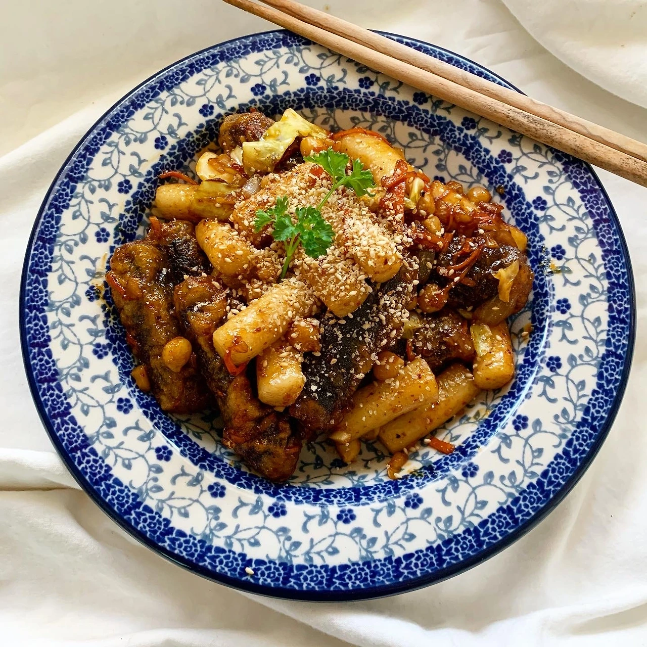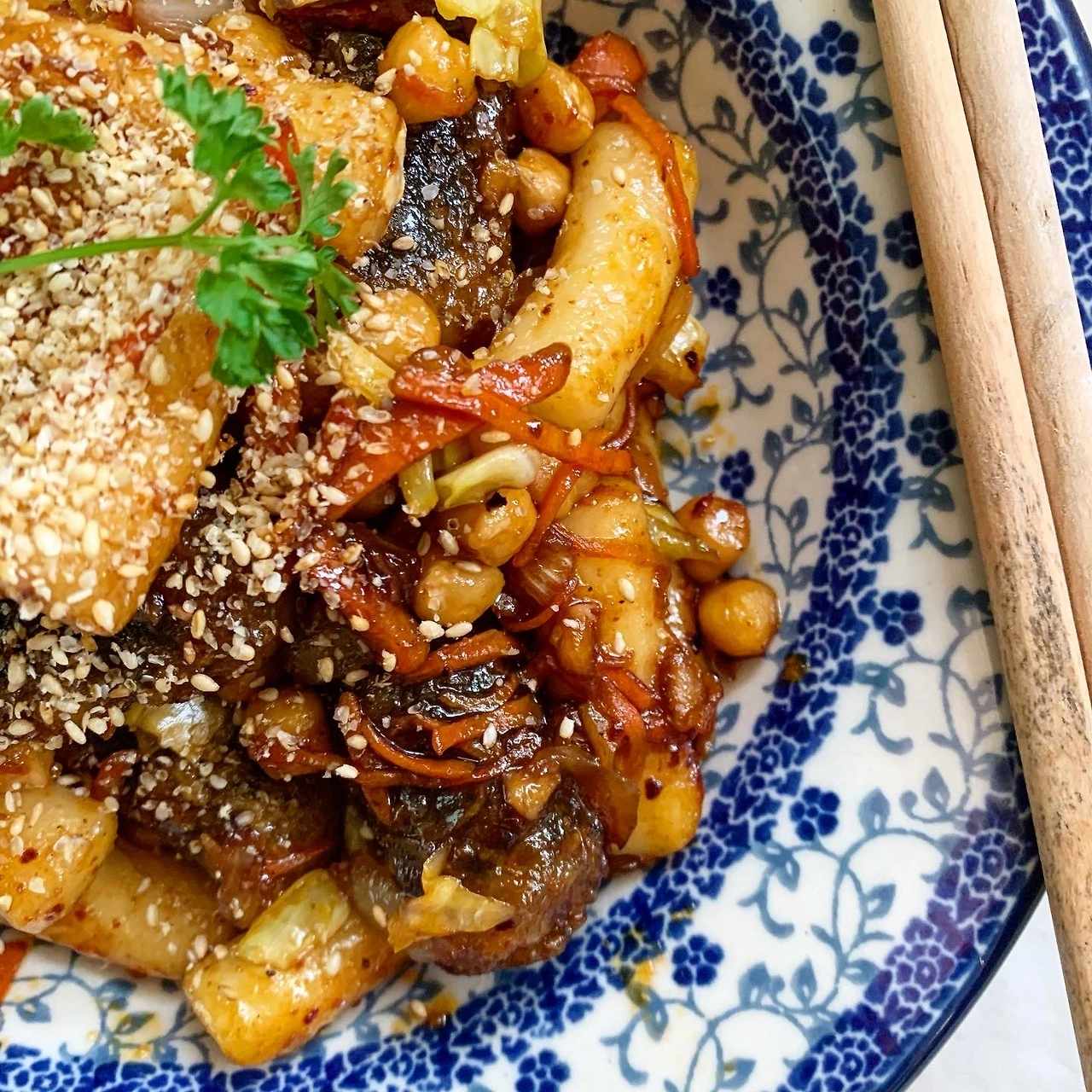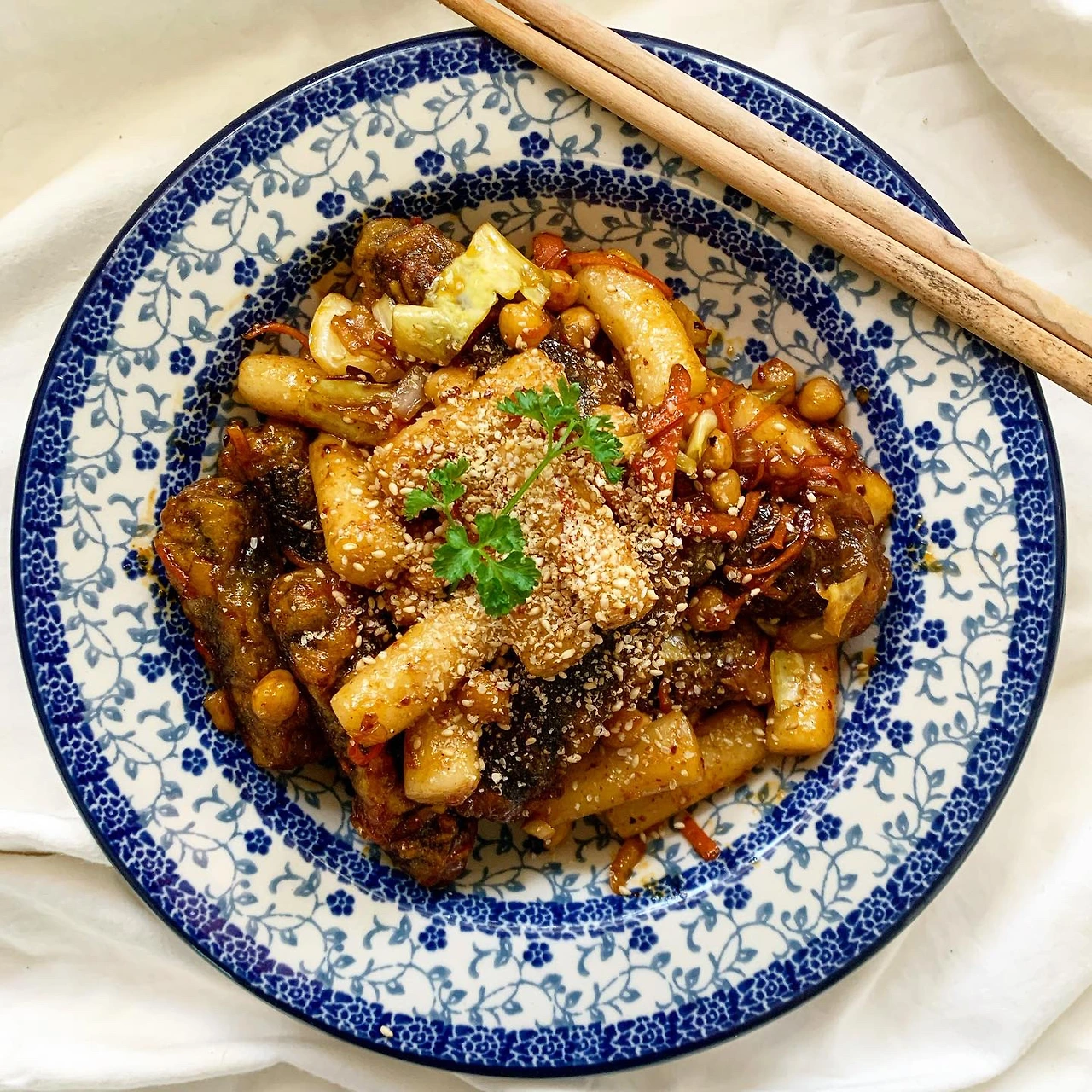 새콤달콤하면서 짭조름한 깐풍 소스로 떡볶이를 만들었다. 여기에 지방 함량은 낮고 칼슘과 단백질 함량이 높은 슈퍼푸드인 병아리콩을 넣었다. 병아리콩의 고소한 맛이 소스와 잘 어울린다. 쫀득한 떡을 먹다가 양념이 잘 배어있는 병아리콩을 하나씩 젓가락으로 집어 들어 입으로 가져가 오물거리는 재미가 있다. 일반적인 떡볶이가 싫증 났다면 이제 깐풍 소스로 떡볶이를 만들어 볼 차례다. 국물이 있는 떡볶이는 이제 '볶는' 떡볶이에 자리를 내줄 때가 됐다. 이번 주말은 '깐풍 떡볶이'와 함께!
