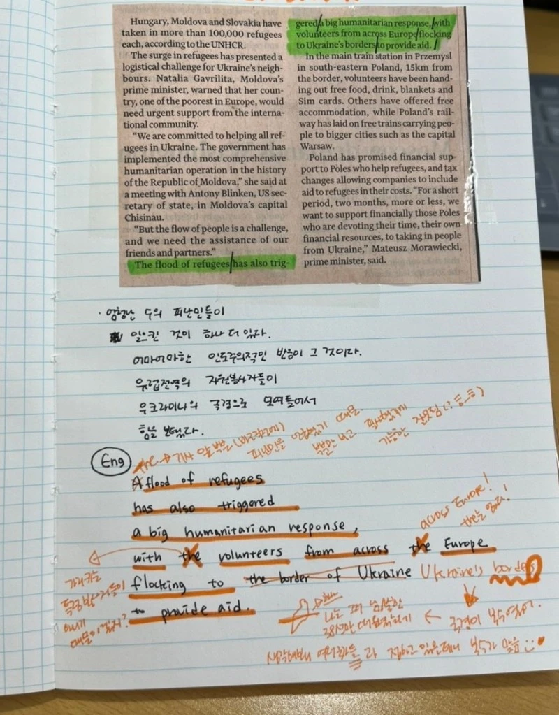 한국어를 떠올리며 영어로 써보기.