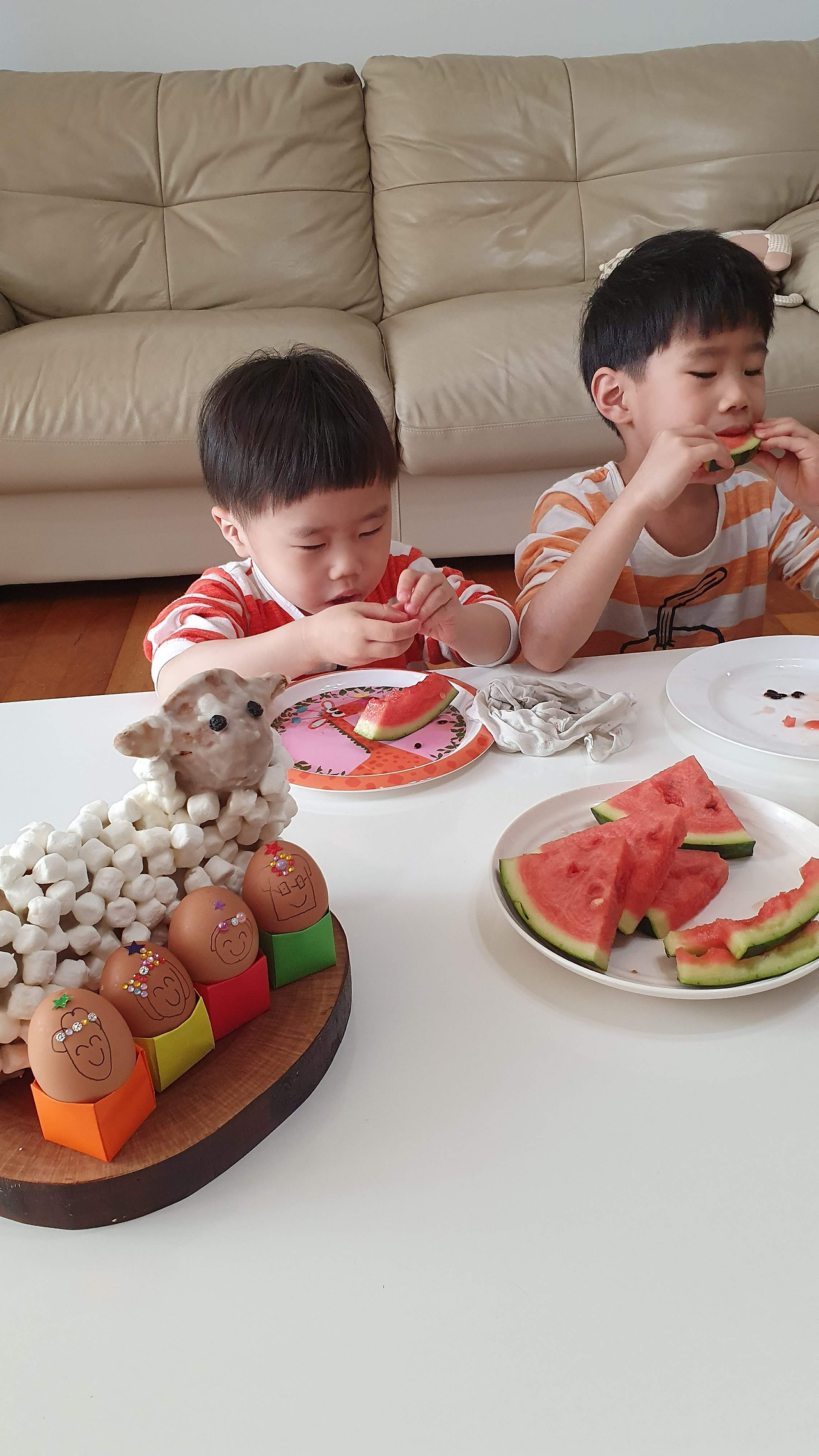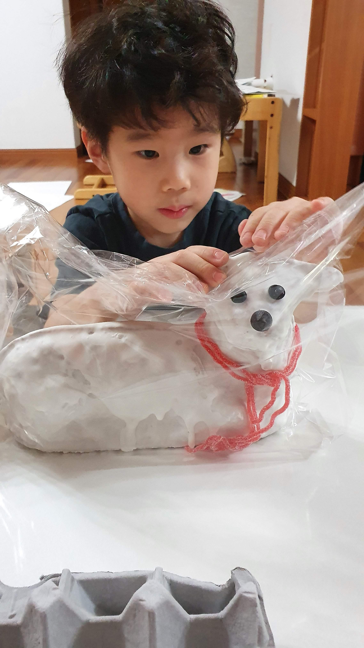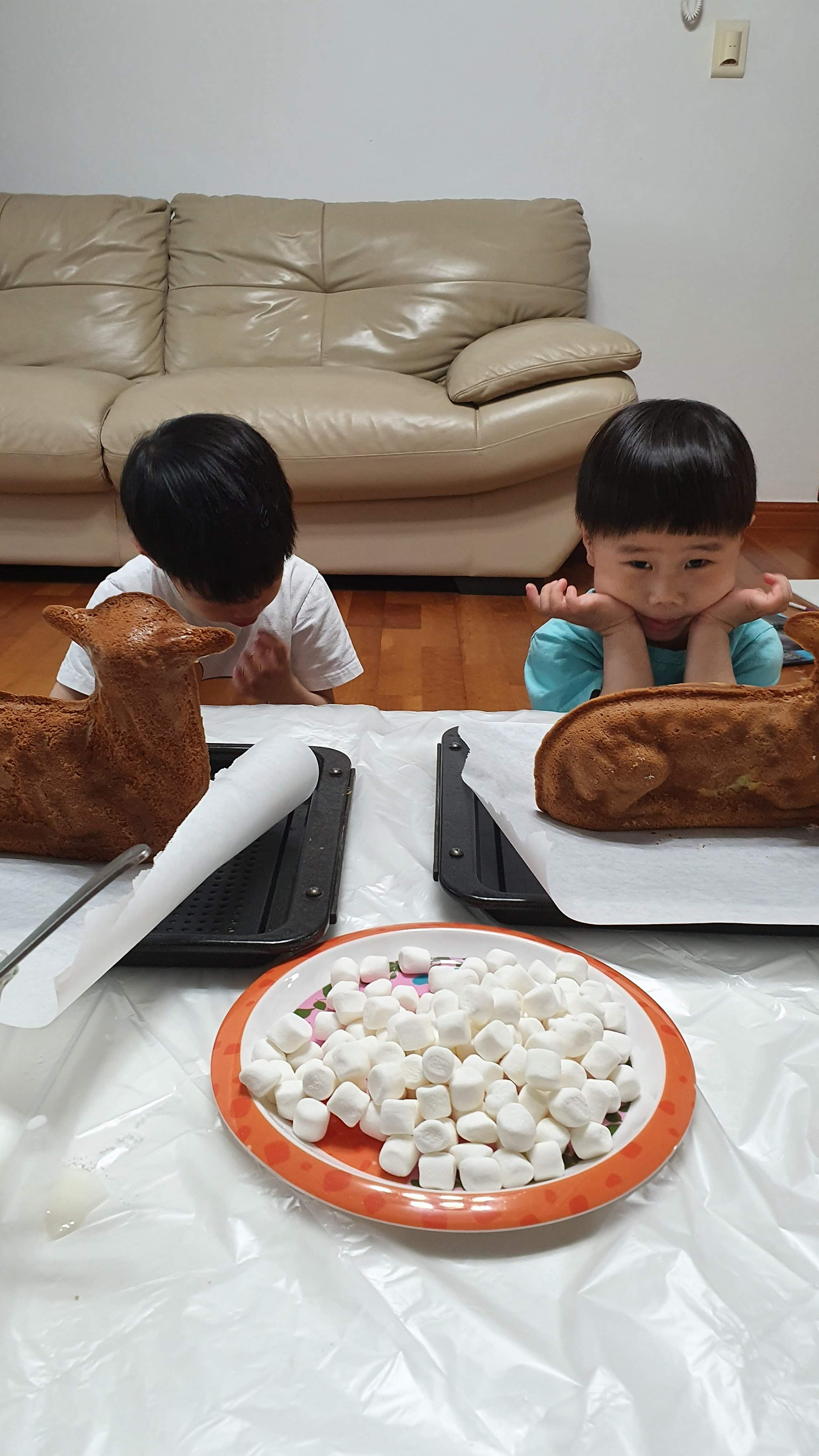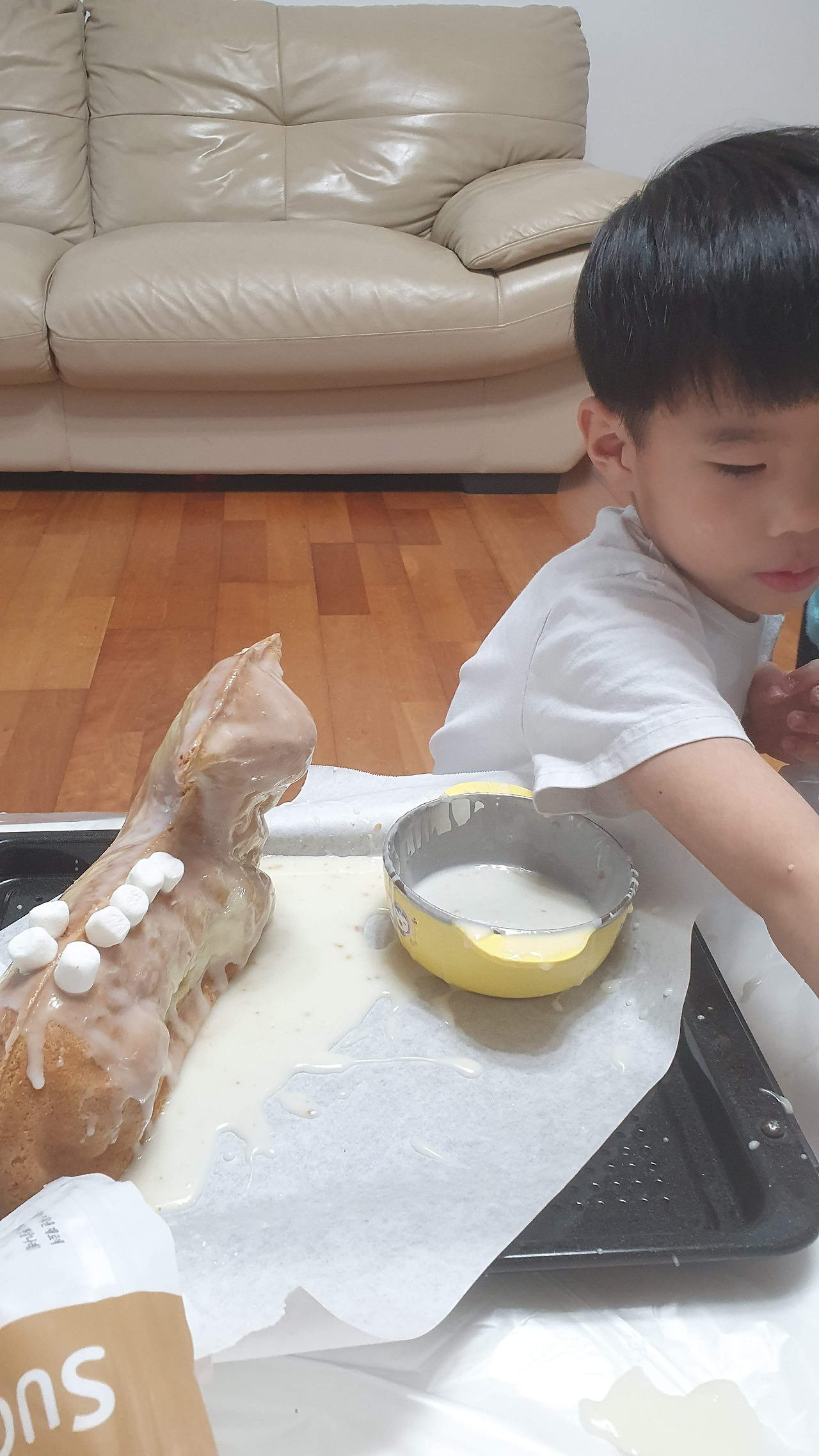 2021년 여섯살, 네살 아이들의 양케이크 꾸미기.