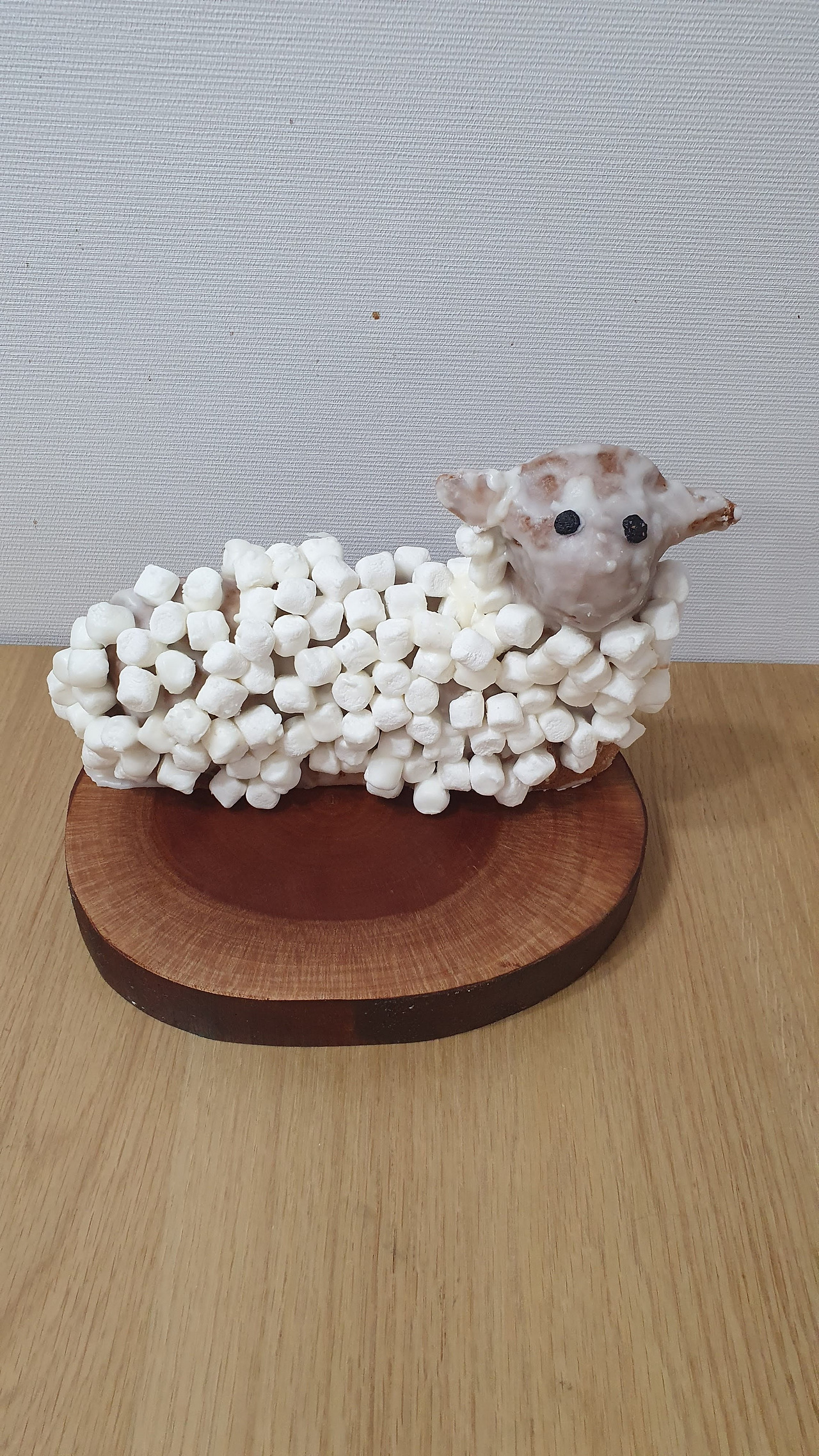 작년에는 하얗게 아이싱을 바르고 빨간 끈 젤리를 사다가 목걸이를 해 주었는데, 올 해에는 아이싱이 굳기 전에 미니 마시멜로를 붙였다. 내 아이디어였다. 양이 하얀칠만 하면 말티즈 강아지 같이 보이기도 해서 뽀글뽀글한 털의 느낌을 살려보고 싶었는데 유투브 영상에서 처럼 짤주머리로 크림장식을 해서 냉장보관을 하긴 곤란했다. 베이킹 큰 손인 나는 네다섯 마리 정도는 만들어야 성에 차는데 그걸 크림 장식을 해서 냉장보관할 공간이 나의 냉장고에는 없기 때문이다. 그래서 화이트 컬링 초콜릿으로 할까 하다가 애들의 손에 3초안에 녹아내릴 얇고 작은 초콜릿을 생각 하며 고개를 흔들었다. 그리고 떠오른 것이 미니 마시멜로. 결과는 대 만족, 대 성공 이었다.
