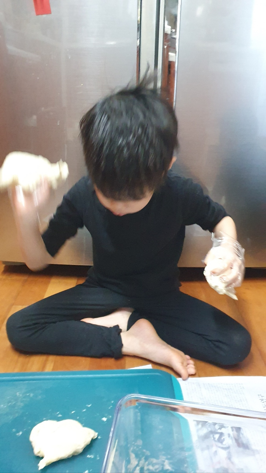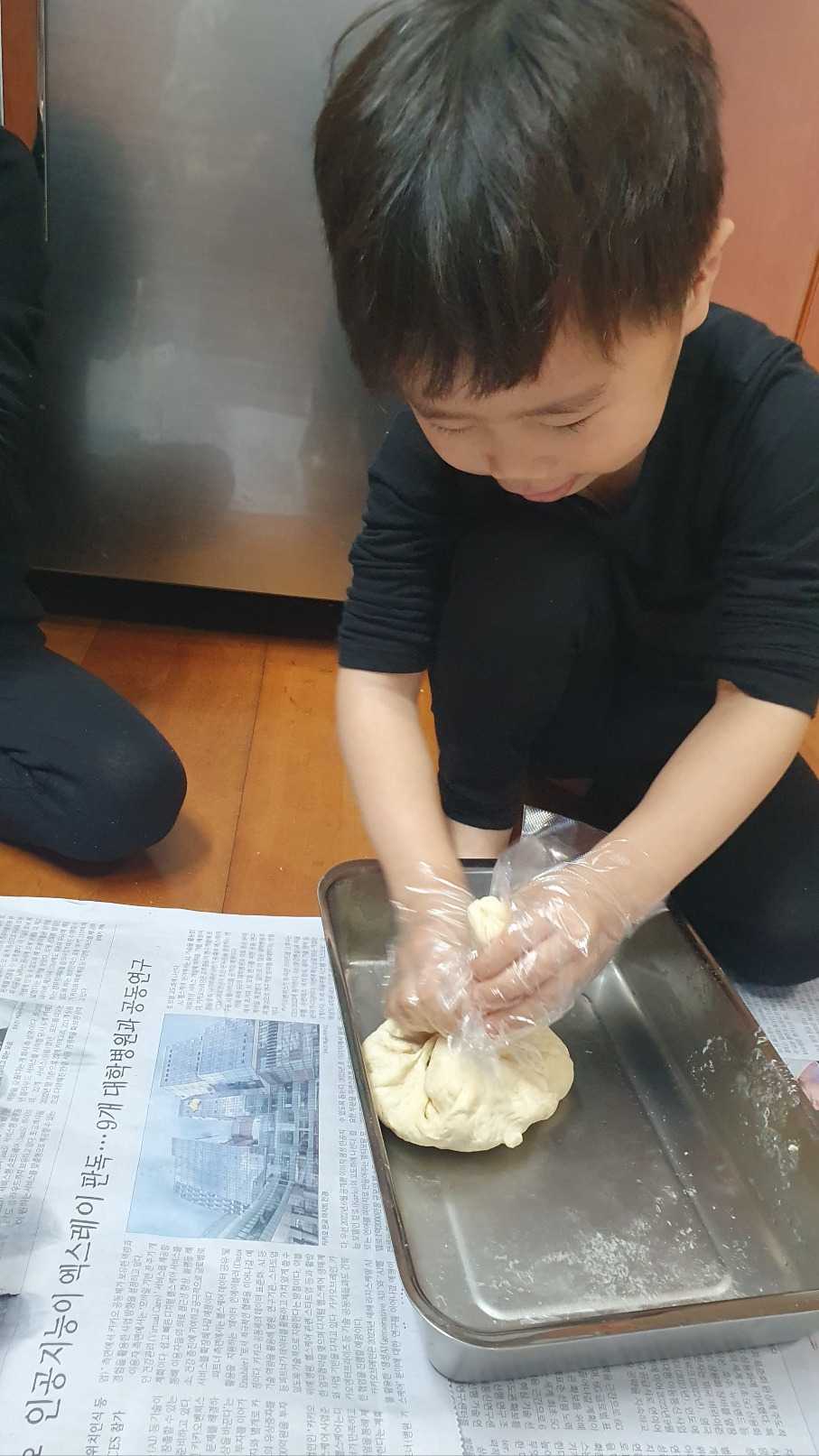 치대는 반죽은 힘이 꽤 들어간다. 자주 할 일은 없지만 어쩌다 밀가루 손반죽을 하고 나면 손목이 시큰거리기 일쑤였는데, 아들놈들이 이럴 땐 꽤 도움이 된다. 반죽을 넉넉히 하여 두 놈에게 나누어 주고 신문지를 깔고 수건도 깔아 쾅쾅 내리쳐도 덜 시끄럽게 만들어 주었다. 엄마가 처음에 밀가루와 물을 주걱으로 살살 섞는 걸 해 보겠다더니 가루를 폴폴 날려 먹는다. 올리브 오일을 한 바퀴만 넣으랬는데 콸콸 쏟아붓고는 미끈거리는 손을 밀가루에 닦으며 즐거워한다. 쾅쾅 때리고 주무르고 내리치라 하니 신나게 반죽을 하는 아이들. 나는 손목이 아파지는 과정인데 아들들의 손목은 아무 지장이 없나 보다. 반죽은 정말로 엄마를 도와주었다. 밀가루는 조금 날렸지만, 너무 신나 입을 헤 벌린 채로 반죽에 열중하다가 그만 침을 떨어뜨리고 말았지만 말이다. 집에서 먹을 거니까 괜찮다. 그렇게 쫄깃쫄깃하게 만든 반죽을 정리하여 전기장판에 묻어두었다. 지금 크기에서 두 배만큼 커질 때 까지 기다려보자. 점심 먹고 반죽을 하였으니 저녁엔 먹을 수 있을 거야.