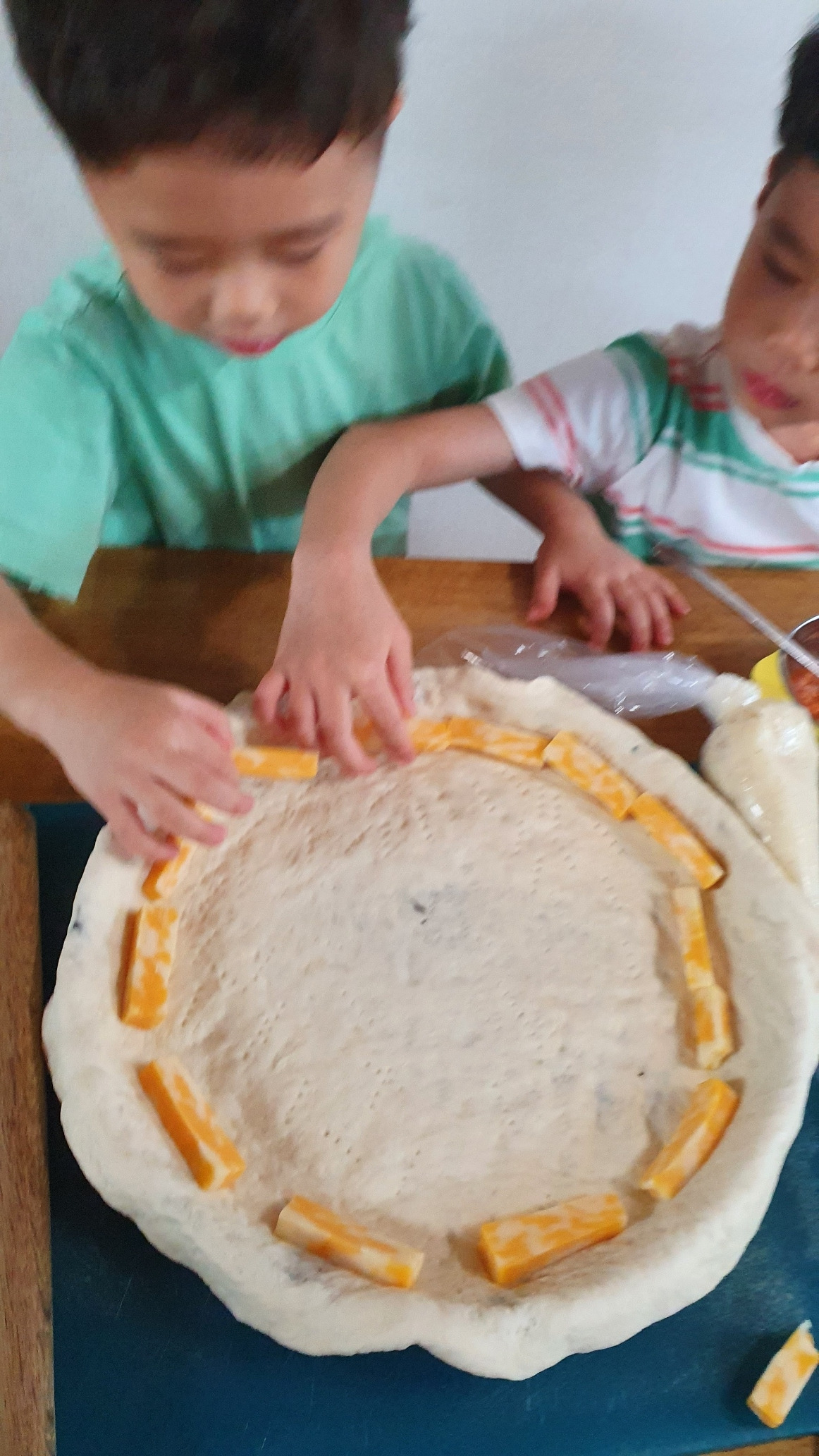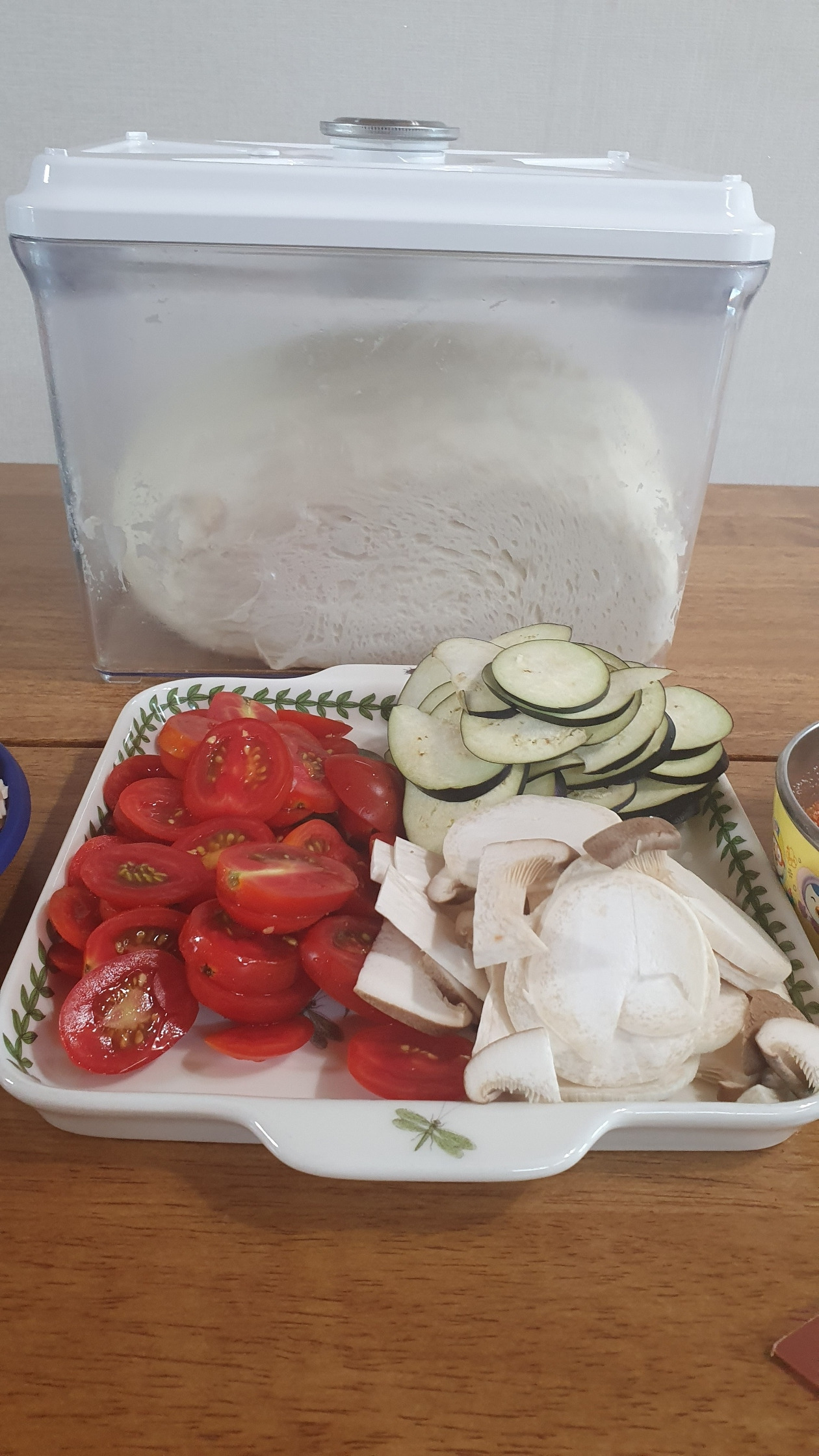 도우도 직접 굽는다. 발표 빵 반죽은 제대로 배운 적이 없기도 하고, 솔직히 홈메이드로는 닭고기처럼 쪽쪽 찢어지는 빵의 식감을 살리기가 쉽지 않은데, 피자는 빵의 비중이 적은 편이라 빵반죽 부담이 덜하니 도우 반죽부터 집에서 한다. 애들이 이제 많이 컸다. 오늘은 반죽도 같이 했다. 계량이 무색하게 둘째가 물을 바닥에 쏟았고 첫째는 올리브 유를 콸콸 쏟아 부었지만 말이다. 그래도 홈메이드 피자이니 별로 상관 없다. 우리끼리 먹을거니까. 이스트가 반죽을 부풀게 하는 거라는 걸 알려주었다. 단번에 반죽이 포켓몬처럼 거다이맥스가 되는거냐며 신기해한다. 신이 난 아이들이 밀가루 반죽을 탕탕 내리치고 손으로 조물거리며 이제 제발 하지 말라고 뜯어 말릴 때 까지 도와? 주었다. 덕분에 아주 쫄깃한 피자 반죽이 되었을까. 여름이라 그런지 반죽을 해 놓고 속재료를 준비 해 놓으니 벌써 부풀었다. 얘들아!!!! 거다이맥스로 진화했다.!!!!