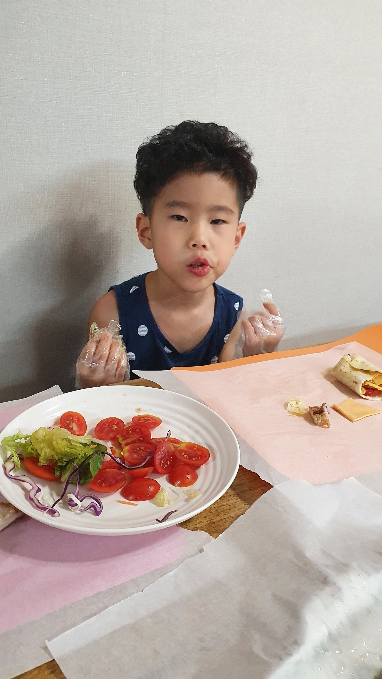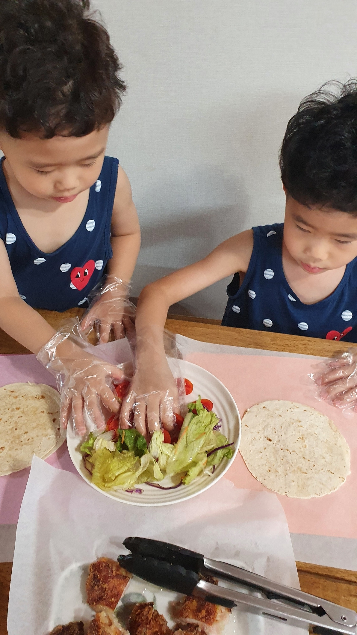 아이들과 시간도 때울 겸, 만들면서 먹으면서 조금 더 수월 하게 먹일 겸 쿠킹 시간도 자주 갖는 편이다. 그런데 아이들이 할 만하게 준비 해 주고, 아이들이 깨작대도록 앞접시며 쿠킹 도구들을 더 넉넉히 준비 하고, 저지레한 부분들을 치우다 보면 에너지는 더욱 더 고갈된다. 그래도 아이들과 함께 하는 시간은 뭐를 하는 것도 힘들지만, 아무것도 안 하는 것이 더 힘들기에 내가 그래도 해 줄 수 있는 쿠킹시간을 자주 가지려고 하는 편이다. 엄마는 머시마들 데리고도 잘 한다고 하는데 그냥 아이들이면 아이들이지 굳이 왜 머시마들 이라고 하는지, 물어보려다가 참았다. 엄마. 자기 밥은 자기가 해먹는데 머시마가 어디 따로 있겠어.