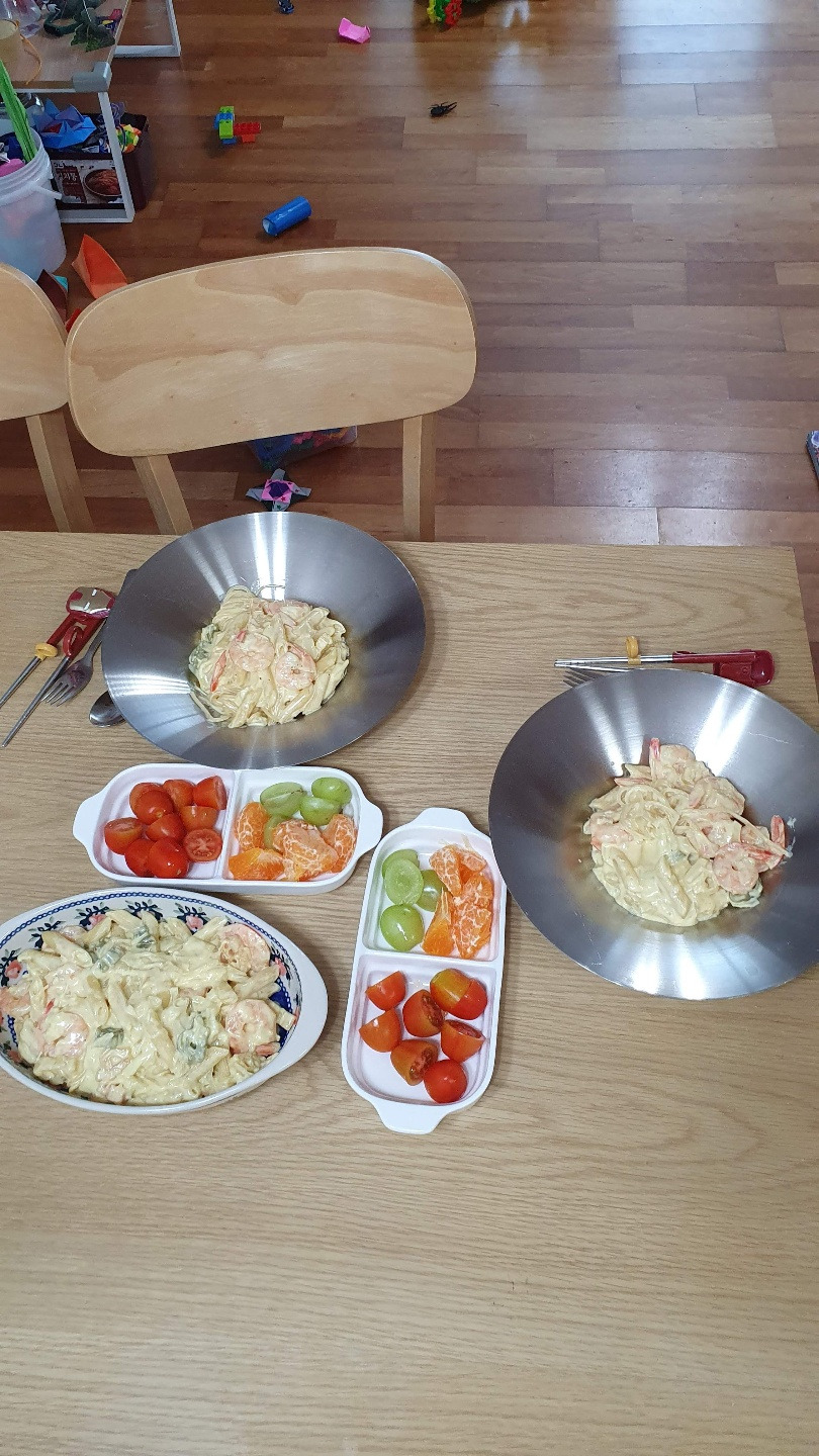 매운걸 못 먹는 아이들을 위해 떡볶이를 무려 2종이나 했다. 짜장밥, 파스타도 도 역시나 단골 메뉴.