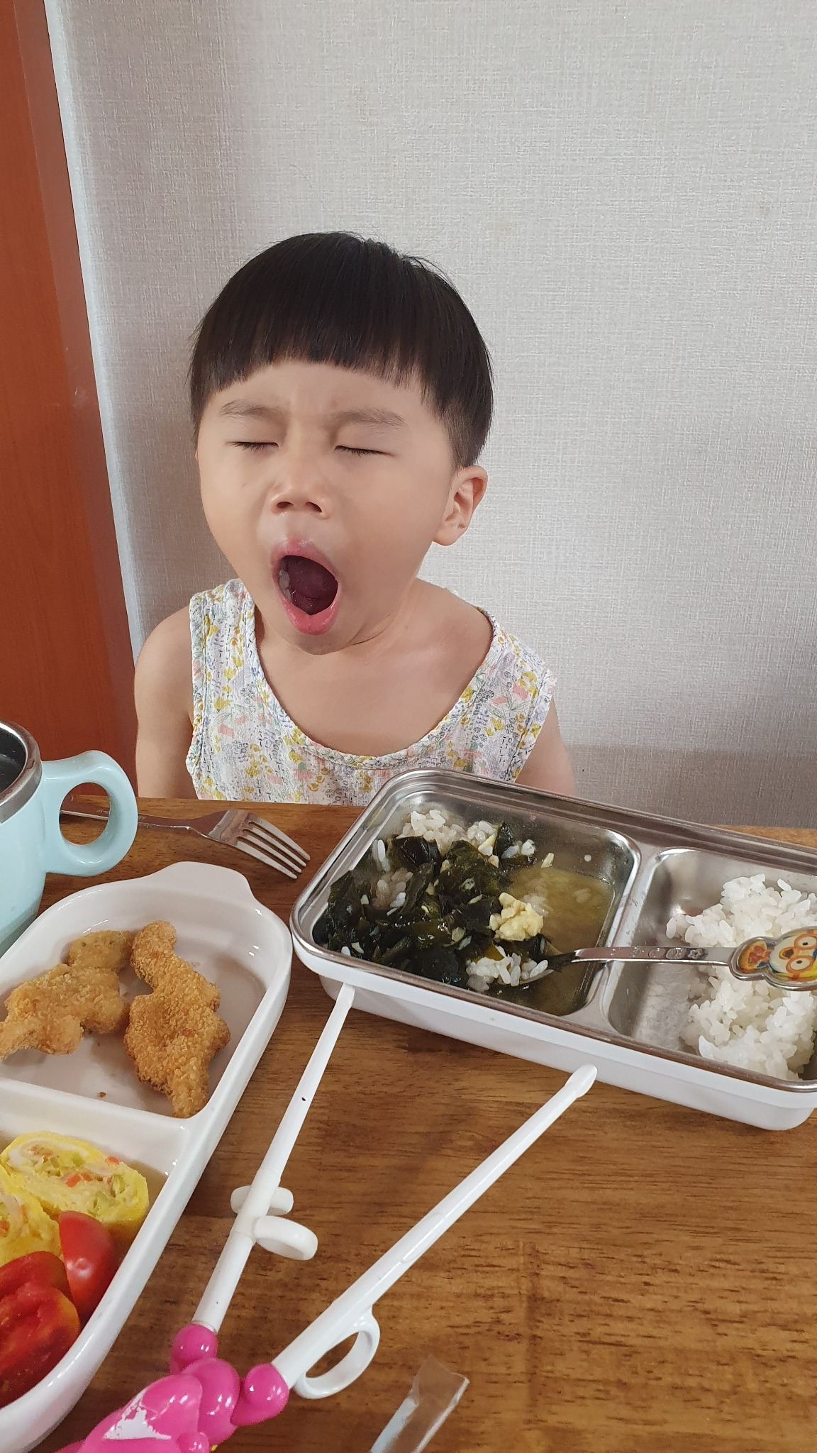 제일 힘든 부분은 메뉴 선정, 장 보기, 요리 하기, 치우기, 다음 요리 생각 하기, 입맛에 맞게 맞춰 드리기 등등이지만 모든 것들이 후추 사용도 조심 스러울 만큼 매운 것을 조심해야 하는 맵찔이 아이들을 위한 요리 여야 하는 부분이다. 일단 고추장 빠진다. 제육, 떡볶이, 진미채 볶음, 멸치 볶음, 어묵 볶음이 모두 간장 베이스여야 한다.맛이 어째 다 비슷하다. 후추도 안 된다. 농심 멸치 칼국수와 사리곰탕도 후추 때문에 매워 해서 사리면에 멸치육수, 치킨 스톡으로 간을 하여 간단한 건조 야채 토핑을 얹어 홈메이드로 끓여준다. 치킨스톡 조미료의 맛으로 시판 라면 못지않은 맛이 난다.