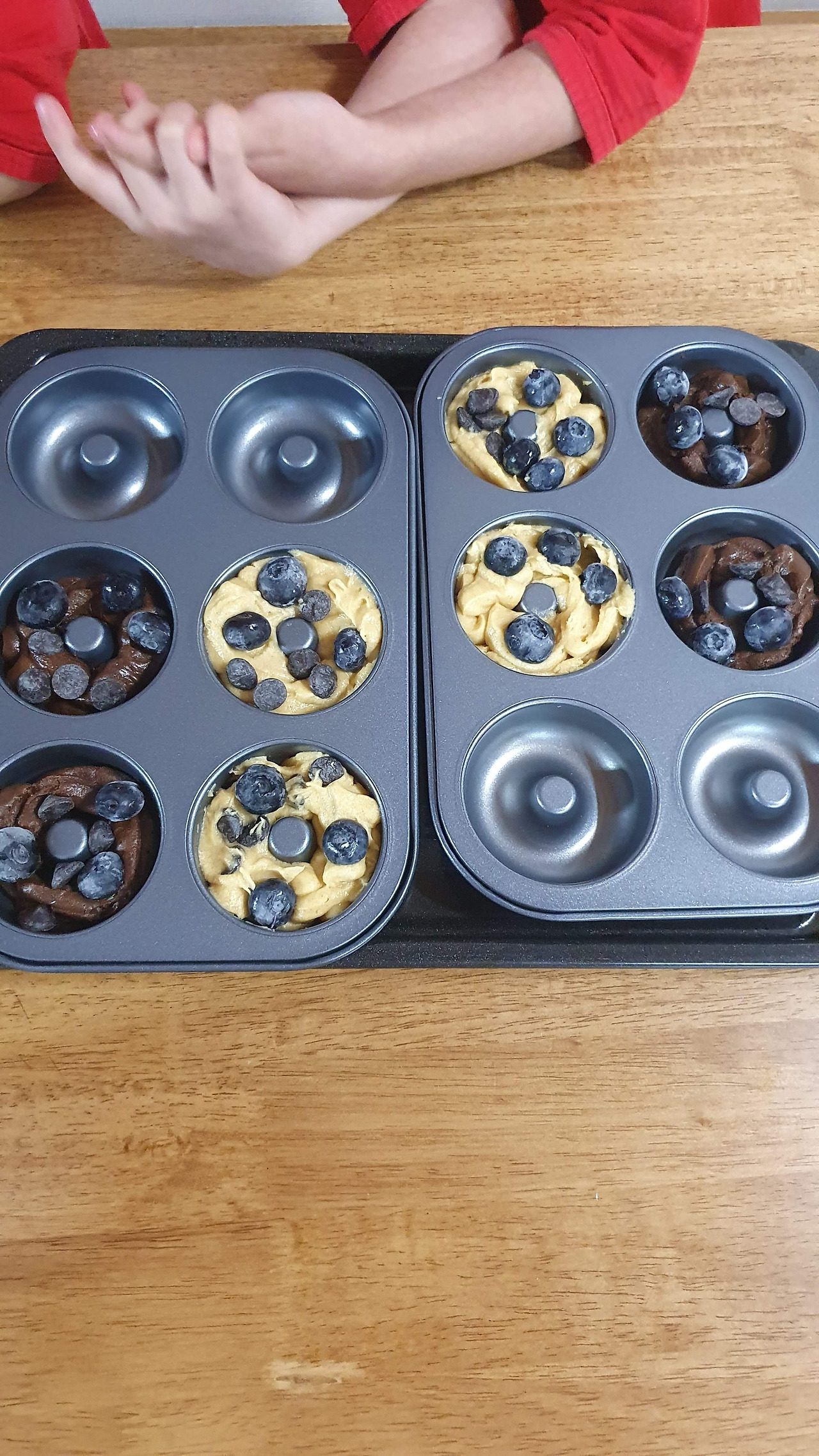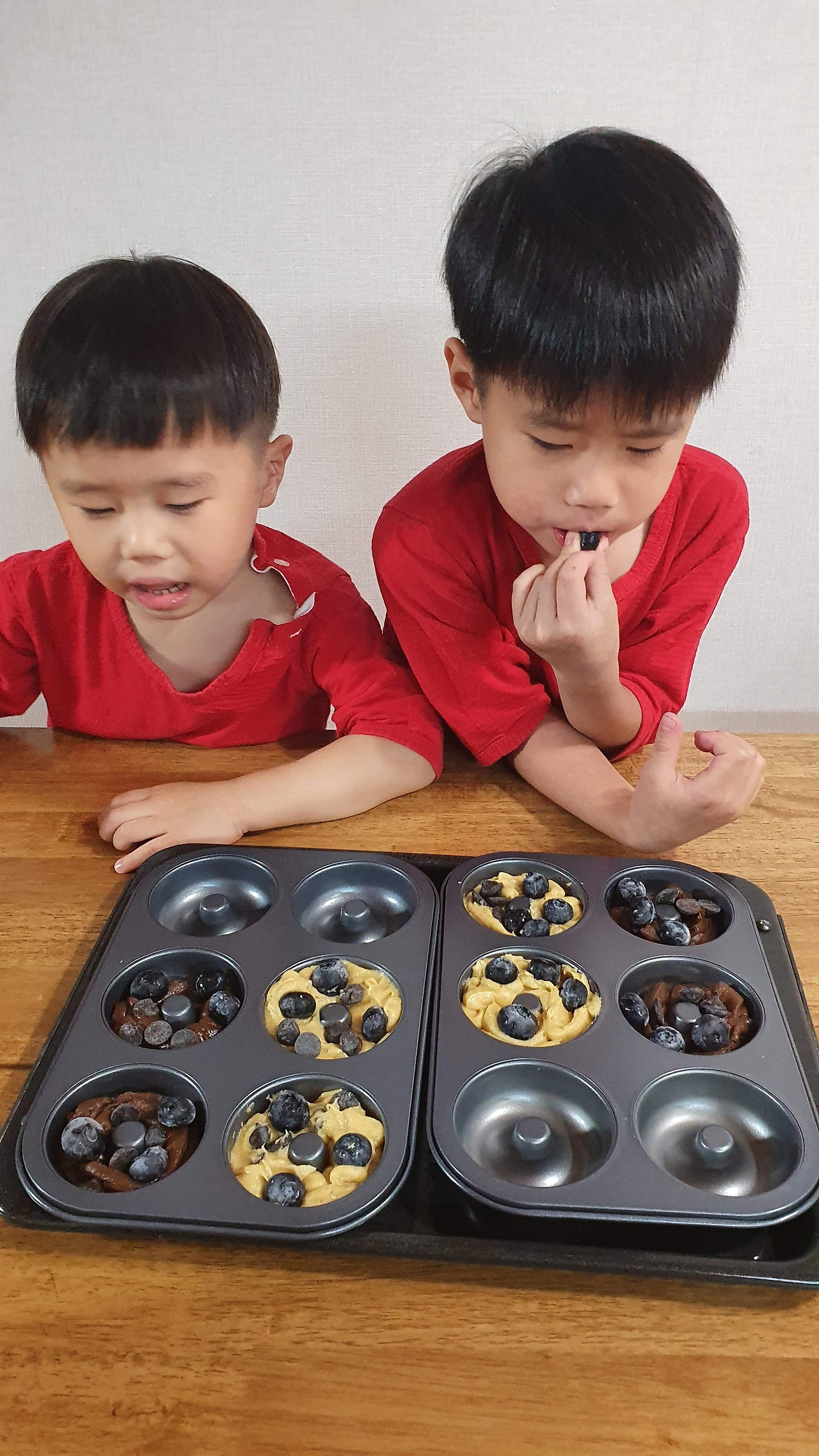 초코빵을 굽고, 수제 띠부실을 한번 포장 하여 빵 포장 봉투안에 함께 넣었다. 무슨 스티커가 들었나 겉에서 보이지 않도록 스티커 두 개를 마주보게 넣어서 까는 재미가 있게 했다. 우리가 집에서 먹을 것은 아이들이 초코렛과 아이스 블루베리를 침과 함께 토핑으로 얹어 만들었고, 친구들에게 선물로 주기로 한 것은 토핑 없는 플레인 초코빵에 수제 띠부실이 두 개 씩 들어갔다. 아이들이 좋아했다. 초코빵을 싫어 할 아이가 어디에 있을까.