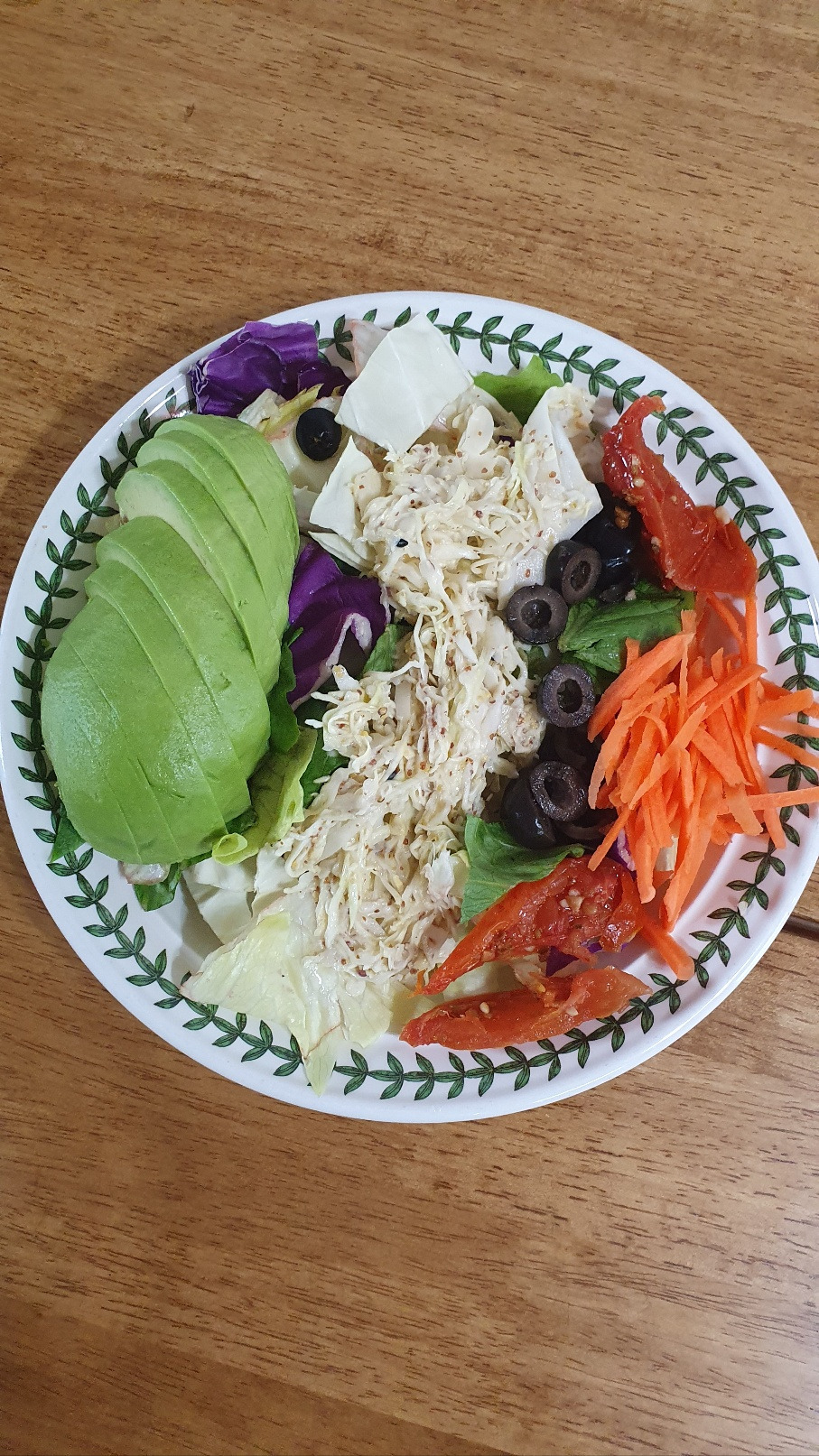 각종 신선한 채소에 냉장고에 며칠 동안 잠자고 있던 양배추는 양배추 코울 슬로를 한통 만들어 놓아 그때그때 곁들이니 끼니때마다 채소를 듬뿍 먹을 수 있어 좋다. 아이들도 즐겨 먹는 음식은 아니지만 눈으로 보아 놓고, 한입이라도 먹다 보면 언젠간 아이들의 인생에도 샐러드가 들어가지 않을까 생각한다. 고기도 먹어 본 놈이 먹는다는 말처럼, 샐러드도 구경해 보고 먹어보면 나중에 찾아 먹겠지. 샐러드를 먹으니 여러 가지로 좋다. 간이 세지 않은 음식을 먹을 수 있어서 좋고 배부르게 먹어도 속이 부대끼지 않아서 좋다. 한식 나물로 채소를 먹으려면 다듬고 씻고 데치고 물기를 꽉 짜내서 무쳐야 하는데, 샐러드는 믹스 채소를 사서 물에 대충 씻기만 하면 되니, 내 손목을 힘들게 하지 않아 좋다. 무엇보다 색색의 재료들로 예쁘게 꾸며진 접시가 식탁에서 나를 부르니, 특별히 나만 손짓해서 부르는 음식이 생긴 것도 좋다. 애들 밥 해주느라 나는 정작 내가 좋아하던 매운맛, 짠맛, MSG 맛을 잃어버렸다. 밥상은 건강 해졌지만 나를 위한 요리는 없어 내가 차려 놓고도 남의 집에서 밥 얻어먹는 느낌이었다. 그런데 샐러드가 나를 불러주니, 나만의 몫이 생긴 것 같아 기분이 좋다. 아이들도 먹어보게 한다. 주로 골라 먹는 건 삶은 계란과 옥수수 통조림, 크랜베리이지만, 생 양상추도 한 번, 채 썬 당근도 한 번은 먹게 되고 무엇보다 식탁에 예쁜 접시가 올라와 기뻐한다. 저녁마다 엄마 식당에 와서 결제를 하는 손님들이 더 기분 좋게 카드를 긁게 하는 기특한 샐러드이다.