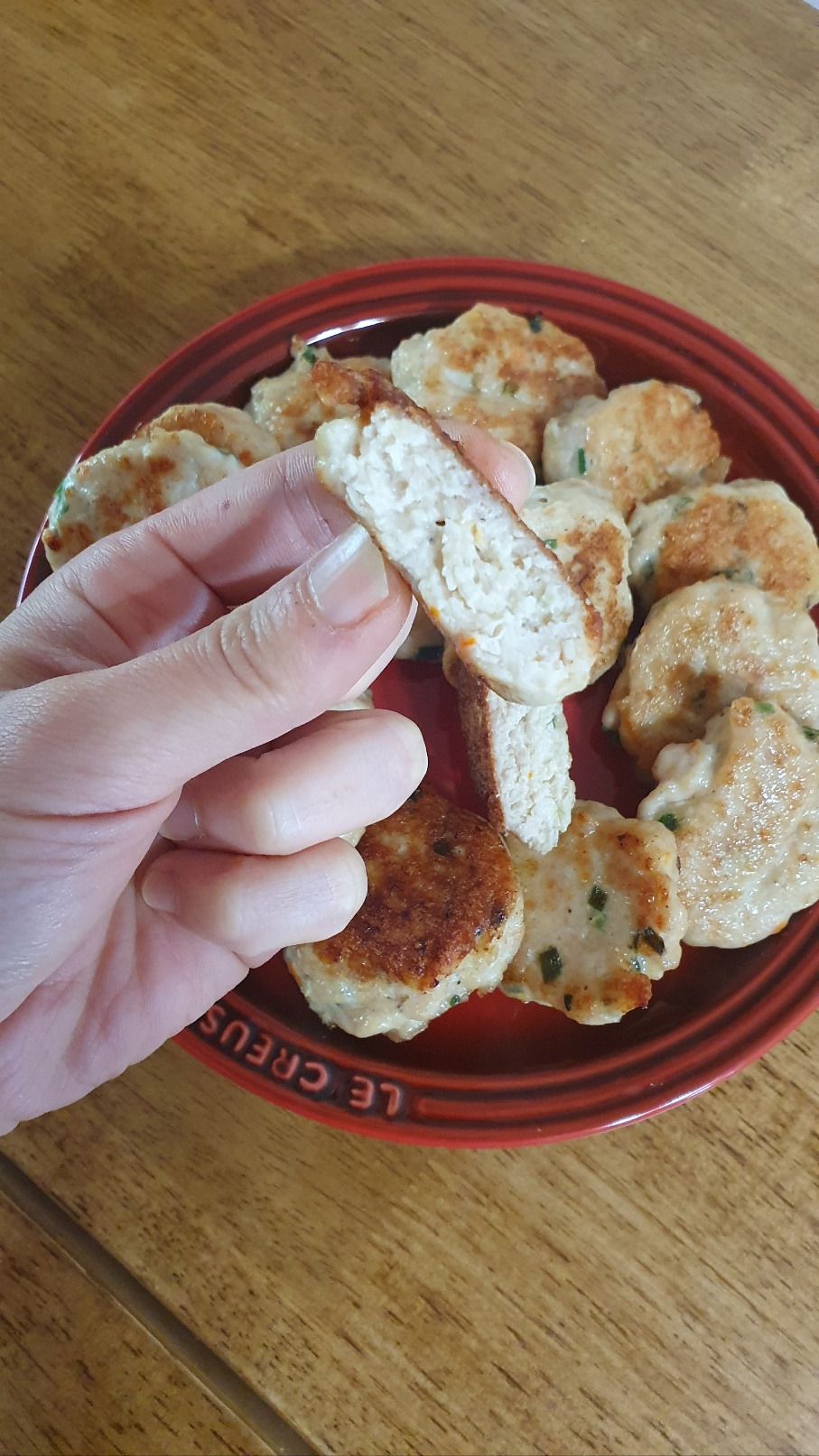 내가 만든 치킨 너겟의 맛은 물론 좋다. 핑크색의 고기가 익어 하얗게 되면 보기에도 시판 치킨 너겟처럼 보이기도 하고 식감도 부드럽고 맛있다. 채소가 다져 들어갔으니 영양가도 더 좋을 것이고, 튀기지 않고 적은 기름에 구워 낼 수 있으니 그 또한 건강에 이로울 것이다. 무엇보다 닭고기 함량이, 질 좋은 안심으로 최소 80퍼센트는 될 것 같아 단백질 반찬으로 손색이 없다. 소분해서 얼려 둔 너겟 반죽은 당분간 아주 요긴하게 먹을 것 같다.