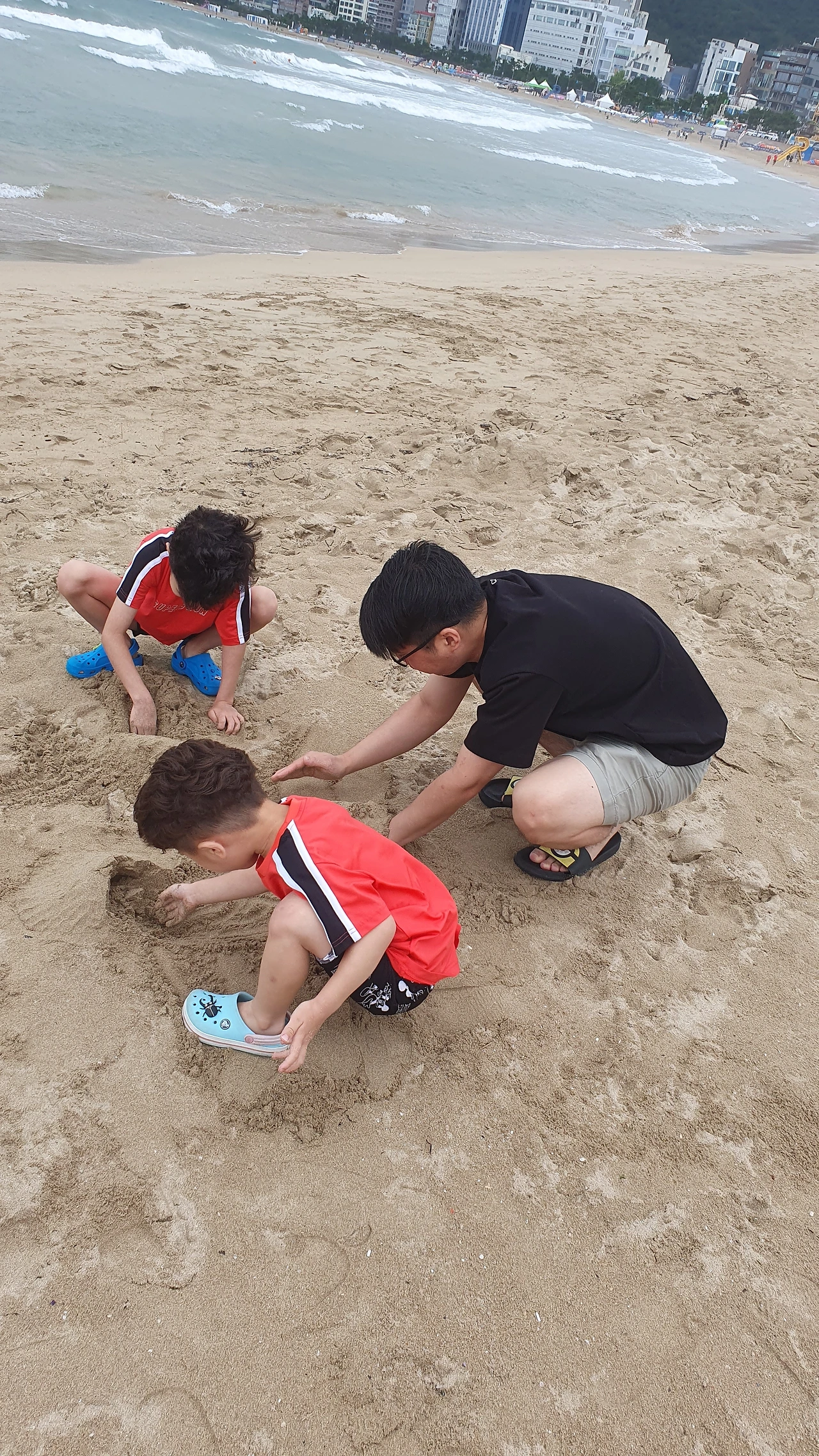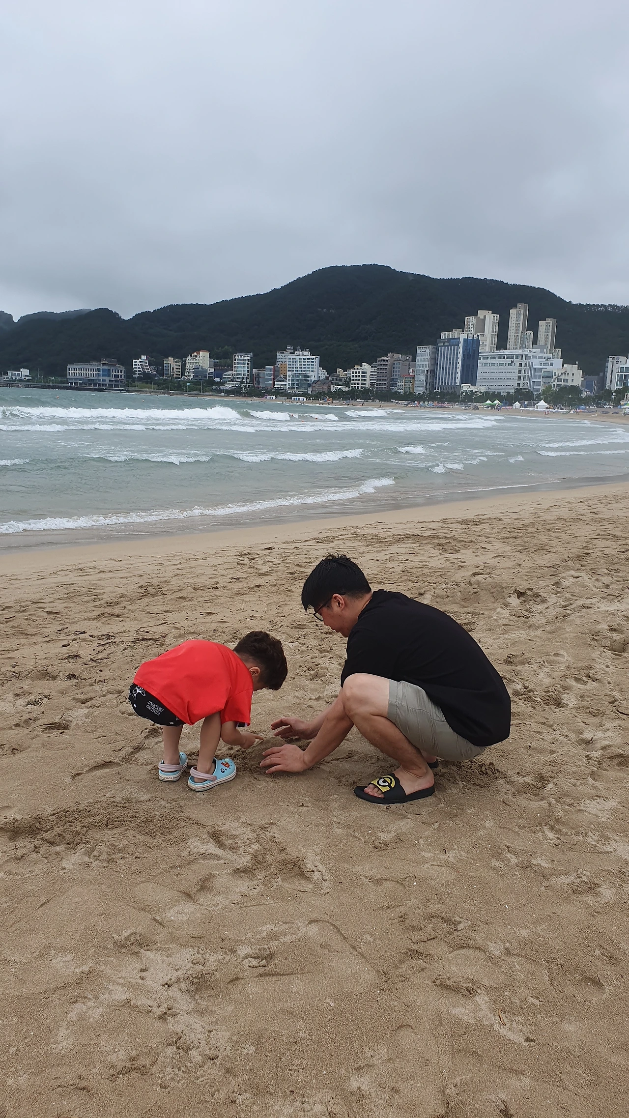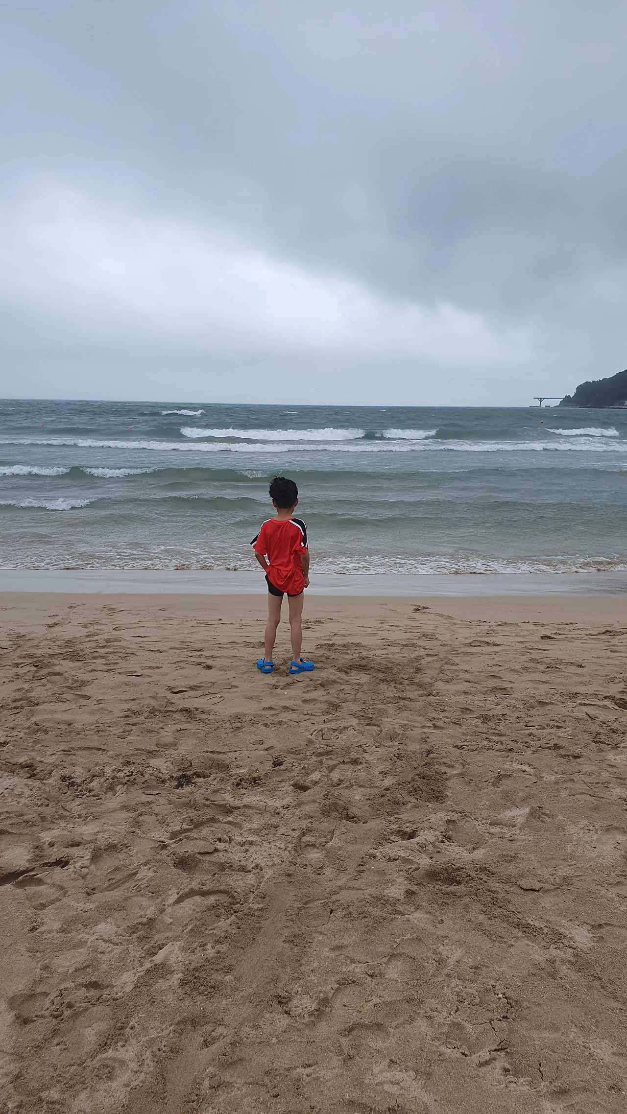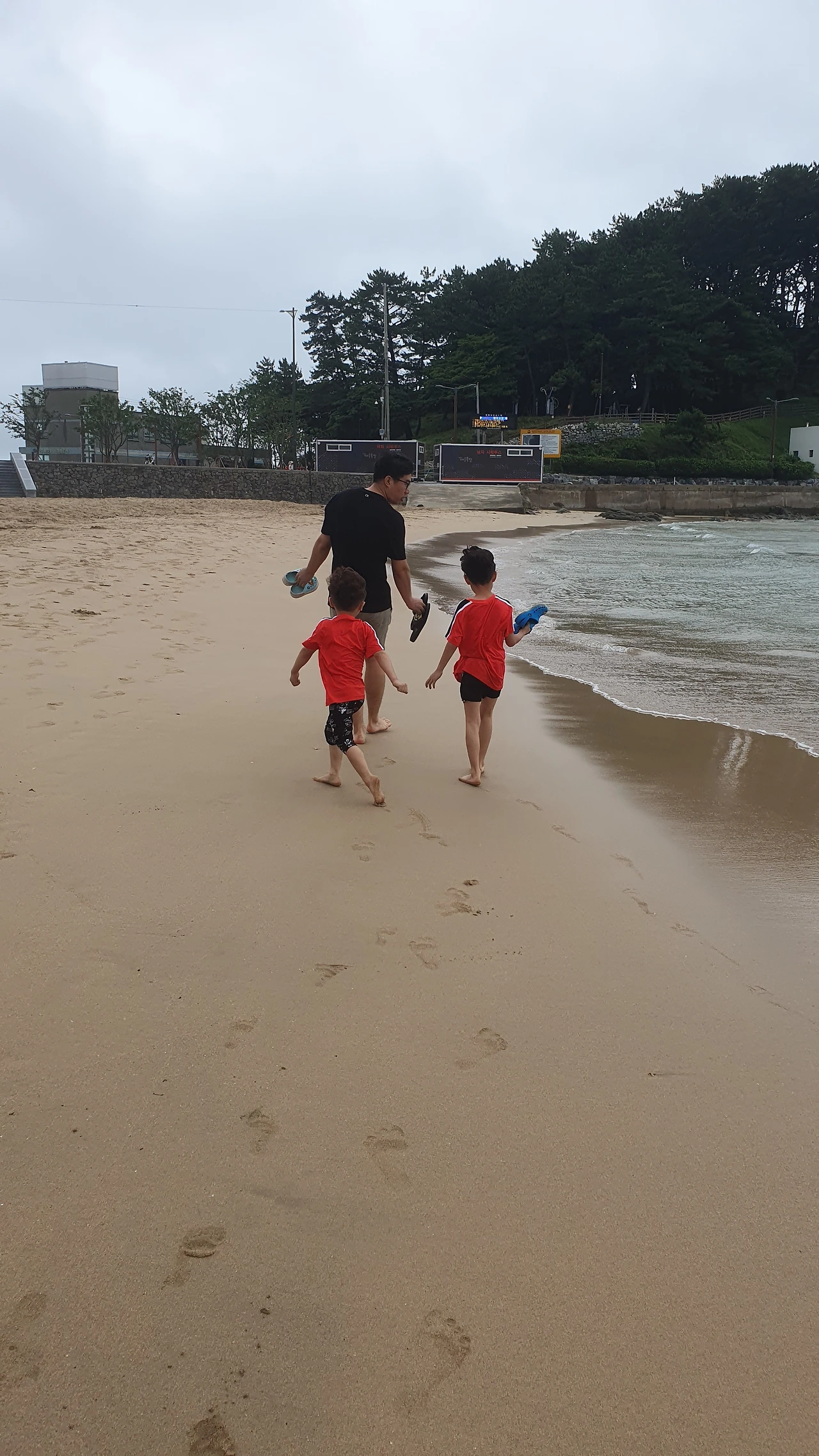숙소를 옮기는 날이다. 땀 흘린 아이들을 다시 씻겨 옷을 갈아입히고 짐을 챙겨 나왔는데 눈앞에 있는 바닷가를 그냥 못 지나가는 형제들이다. 모래놀이로 씻은 몸과 갈아입은 옷이 도루묵이 되는걸 눈으로 보노라니 마음이 아리다. 바람이 엄청나다. 나는 모래를 만지지도 않고 서 있기만 했는데도 다리에 팔에 모래가 달라붙었다. 더운 날씨에 땀도 나고 바닷바람이 습하니 감고 나온 머리가 다시 떡지는 것 같은 기이한 느낌이다.