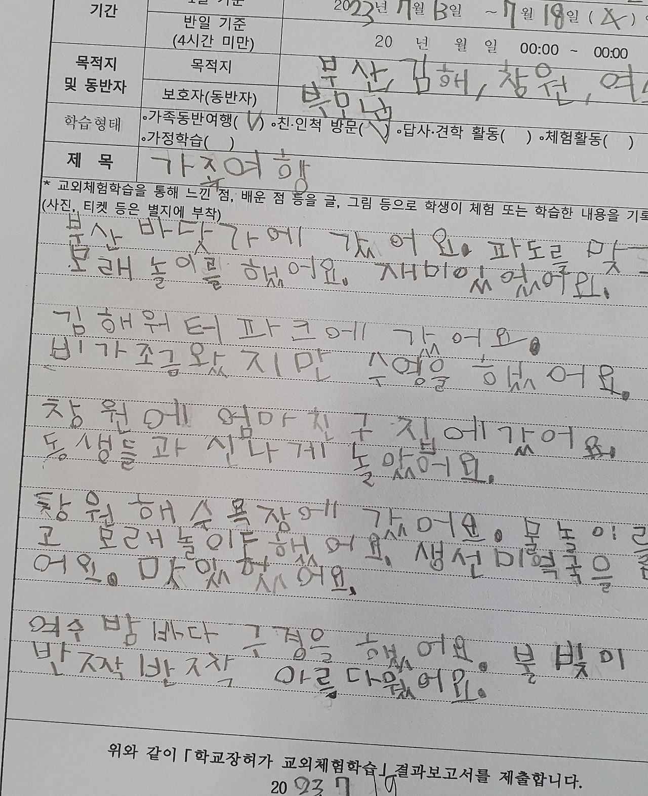 부산은 돌아가신 친정아빠의 고향이다. 아빠는 이런저런 가정사가 얽혀 몇십 년 동안 부산에 못 가보셨다. 그런 부산에 가게 되니, 나의 무의식은 항상 아빠를 떠올렸나 보다. 여행지에서 꿈에 두 번이나 아빠를 만났다. 젊고 건강한, 옛날 모습의 아빠를 만나 옛날에 같이 살았던 동네를 산책하는 꿈을 두 번이나 꾼 것이다. 문득 여행을 아빠가 같이 다녀 주고 계신다는 확신이 들었다. 장맛비가 대차게 쏟아지는 이 계절, 우리 가족은 요리조리 비를 쏙쏙 피해 다녔다. 부산에서 2박 3일을 묶을 때에는 중부 지방에 비가 집중되어 부산에서는 보슬비 수준으로 관광 여행을 하는데에 아무 지장이 없었다. 우리가 부산을 떠나자 부산 전역에 호우 경보가 내렸고 창원에 비가 쏟아지던 날은 선배 언니네 집에 방문하기로 되어있어 안전하게, 즐거운 시간을 보낼 수 있었다. 마산쪽을 여행할 때는 34도까지 치솟는 더위에 아이들이 바닷가에서 놀았는데 그곳과 30분 떨어진 선배 언니의 동네 쪽은 또 호우가 계속되었다고 한다. 바다에서 다 놀고 여수로 향하는 고속도로에서 비가 쏟아지더니 여수에 도착하자 차츰 개었고, 덕분에 배를 타고 섬 마을 구경을 선선한 바람을 맞으며 할 수 있었다. 마지막 날에도 여수에 머무를 때까지는 보슬비 수준이었다. 차를 타고 고속도로에 진입하자 앞이 제대로 보이지 않는 집중 호우를 만났다.