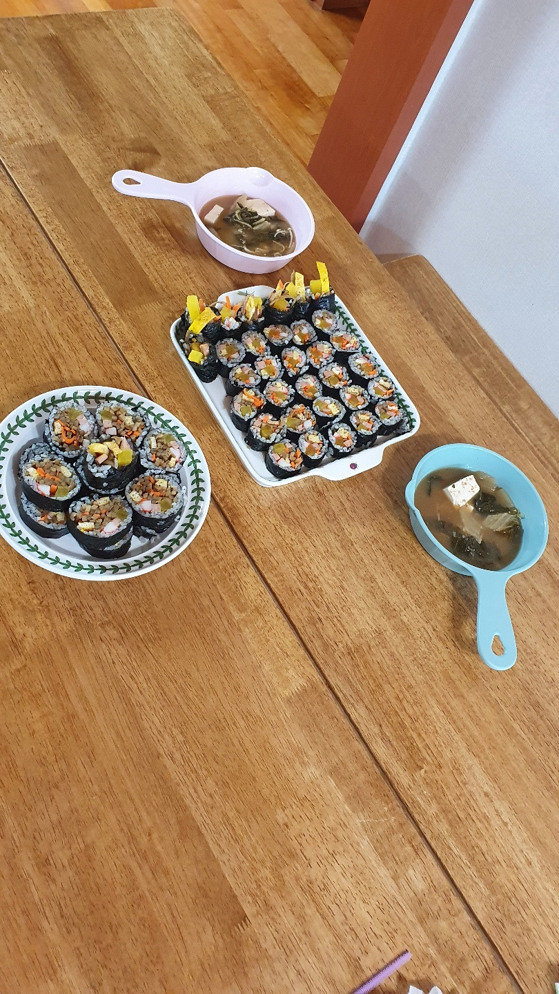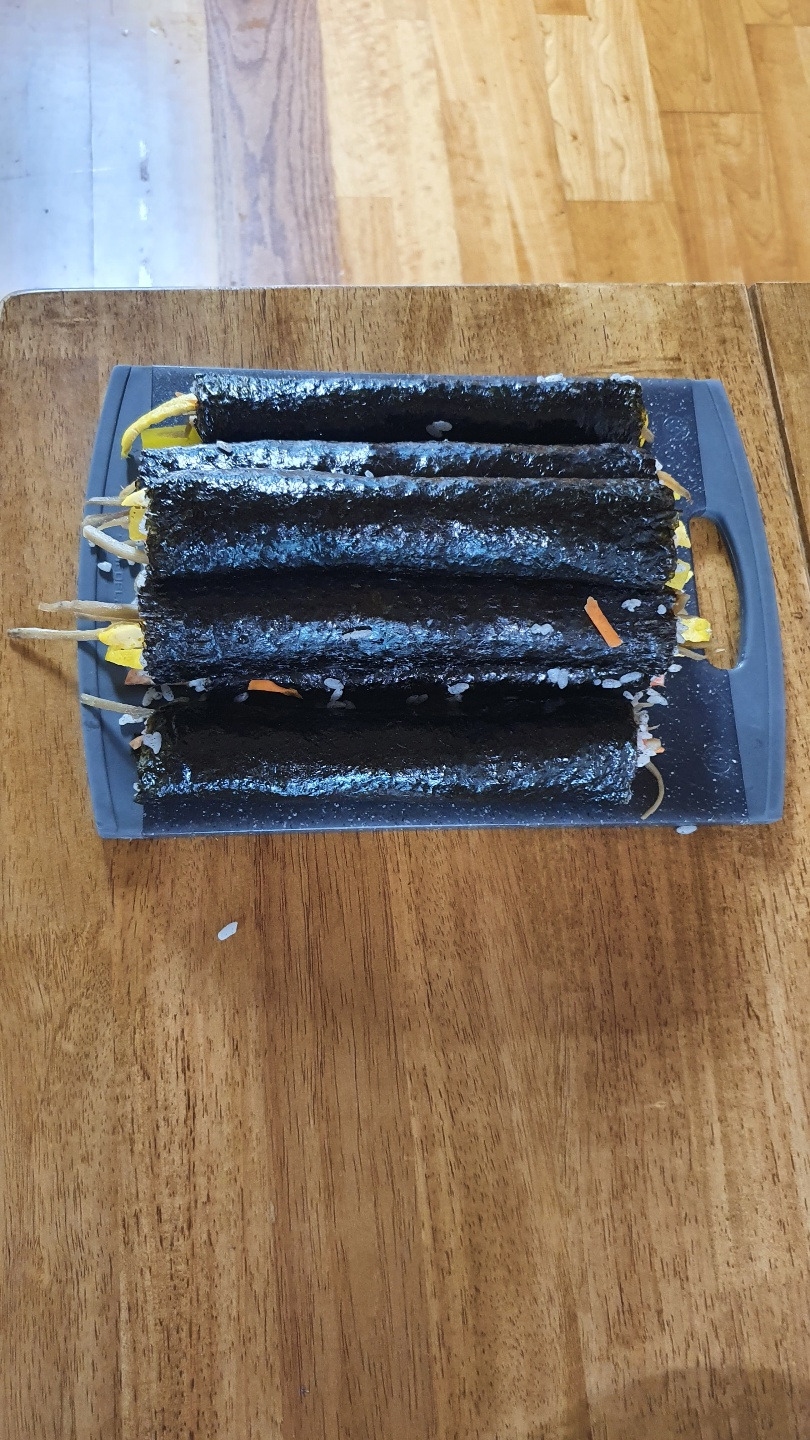 오늘은 김밥을 말았다. 내가 말았지만 정말 맛있었다. 집에서 만든 우엉조림에 스팸, 맛살, 단무지, 우엉, 당근, 계란에 흰쌀밥 밑간에는 맛소금과 참기름, 검은깨 가루를 넣어 고소함을 더했다. 내일까지 김밥전 먹겠구나 싶은 양이었는데, 애들도 잘 먹고 신랑도 잘 먹고 나도 잘 먹었더니 소화가 안 되어 밤 잠을 못 이루는 중이다.