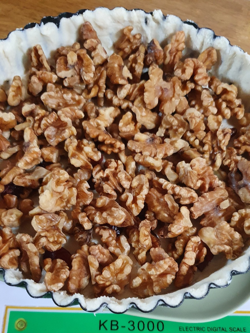 처음 구워 낸 파이, 신랑에게 물어보니 맛있다 한다. 신랑은 뭐든 맛있다 한다. 나도 맛있긴 한데 파이 필링과 호두의 비율이 뭔가 맘에 들지 않는다. 필링이 적어 뭔가 뻑뻑한 느낌이다. 호두를 10 그램 줄이고 파이 필링을 조금 더 늘려야 겠다고 생각했다. 오늘 밤에 다시 구워봐야지. 다시 비례식 시작.