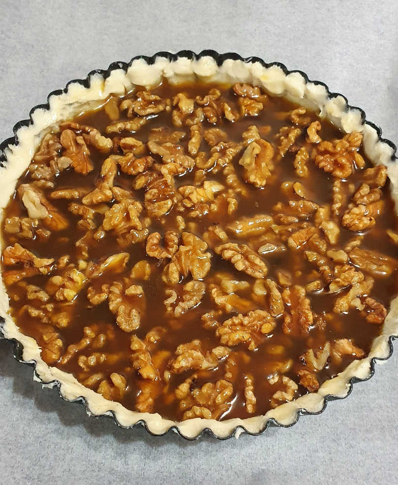 그래서 내가 스스로 연구한다. 다른 사람들의 레시피를 보며 우리 엄마가 넣지 않던 재료들은 뺀다. 그리고 다른 사람들의 쿠키, 머핀 레시피와 우리엄마의 쿠키, 머핀 레시피를 비교하며 설탕의 비율을 따져보고 호두파이 레시피에서도 비슷하게 설탕의 양을 잡는다. 호두파이는 달콤함, 바삭함, 고소함(느끼함)의 황금비율이 맞아야 한다. 파이 반죽을 타르트 틀에 붙이고 적당량의 호두를 넣고 파이필링 이라고 부르는 달걀물을 채워 구우면 달걀물이 푸딩처럼 되며 호두와 같이 씹혀 부드럽고 고소한 맛있는 파이가 되는데, 엄마는 그 레시피를……..