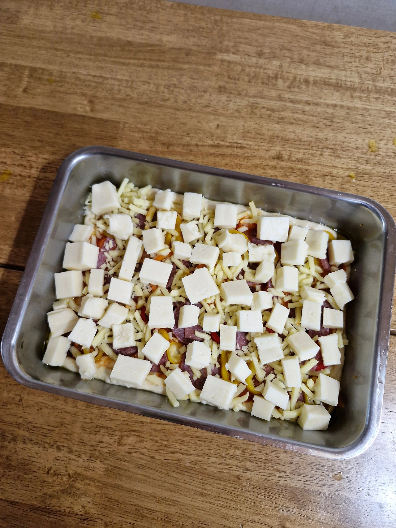 며칠 전 유튜브 알고리즘이 보여준 디트로이트 피자 영상이 계속 아른거렸다. 퐁신하면서도 든든한 도우에 소스와 치즈 듬뿍 올라간 토핑, 치즈가 바글바글 끓어오르며 바삭하게 구워져 치즈 누룽지를 떼어먹는 그 모습. 디트로이트에 갈 수는 없으니, 집에서 흉내라도 내 봐야 아른거림이 없어지지 싶었다.