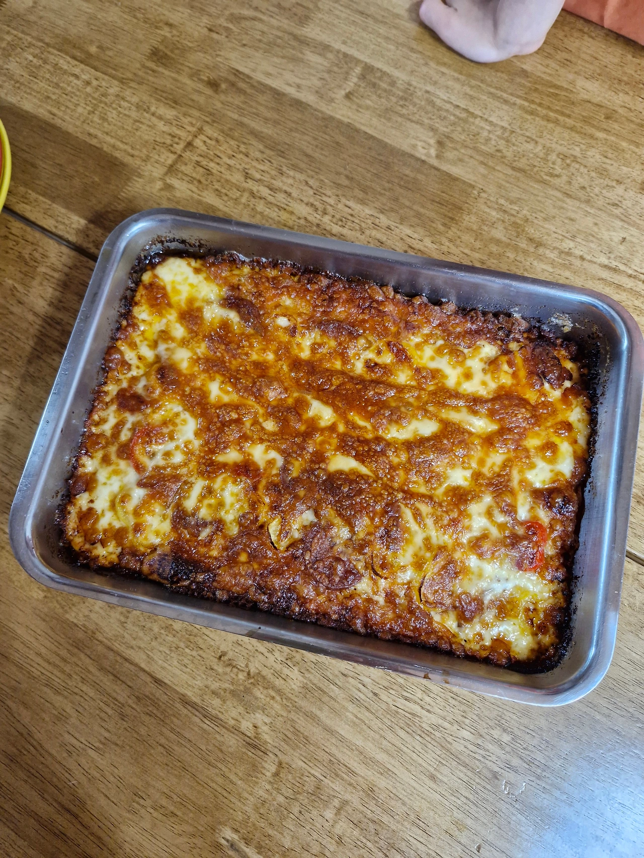 오리지널 디트로이트 피자를 먹어보지 않아 비교는 불가하지만, 홈메이드 피자는 언제나 맛이 좋다. 다만 전용 팬이 아니라 밧드에 조금 눌어붙어 크리스피 한 맛을 충분히 맛보지 못해 아쉬웠다. 역시 요리도 장비빨인가 보다. 이렇게 저렇게 쟁여둔 장비들이 원형 피자팬, 사각 브라우니 팬, 머핀 팬, 식빵팬, 오란다팬이라고 불리는 파운드 팬 등등 정말 많아서, 장비를 더 구매하고 싶지는 않은데, 이런 피자를 더 충분히 즐기려면 팬 하나쯤 더 사야 하려나?