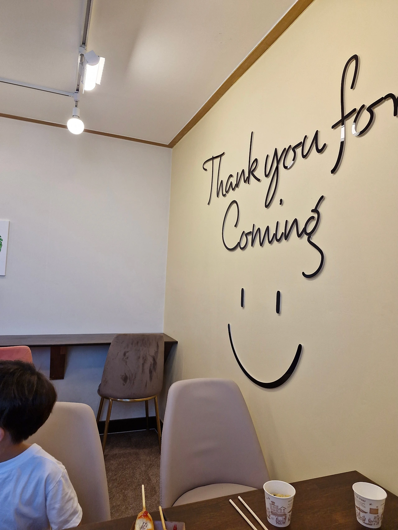 열 두시 넘어 김해에 도착하여 잠만 자고 숙소의 조식당으로 갔더니 라면, 핫도그, 시리얼, 우유가 준비되어 있다. 엄마가 평소에 잘 안주는 음식으로 차려진 아침식사에 환호하는 아이들. 이 또한 여행의 재미. 요즘 알파벳을 배우는 둘째가 Thank you for coming이라고 쓰인 문구를 보고 너무도 당당하게 해피벌쓰데이라고 쓰여 있네라고 하여 파안대소하였다. 둘째의 천진함은 언제나 사랑이다.