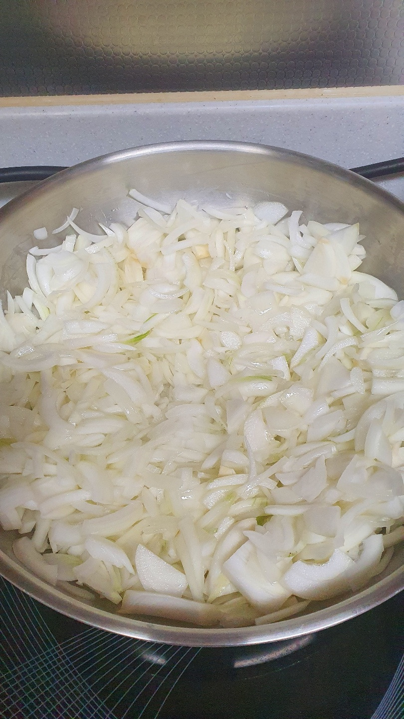 양파의 변신. 두시간이 넘게 걸린다. 화장으로 치면 신부화장 수준