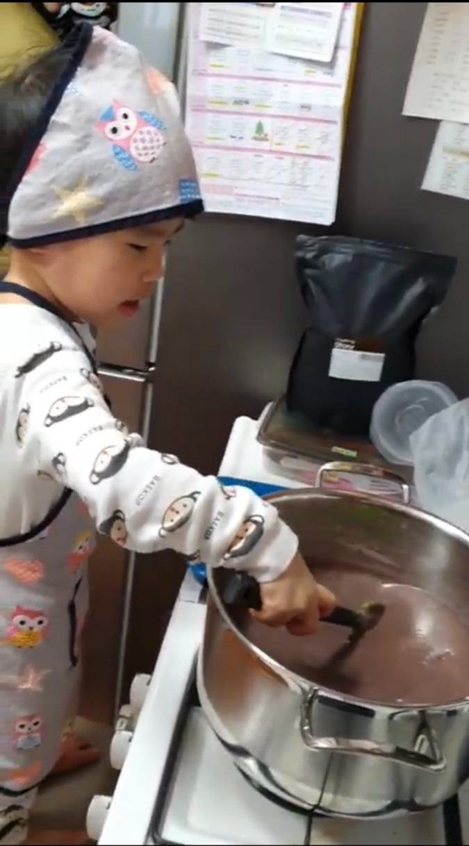 벌써 3년 전, 큰 아이와 동지팥죽을 쑤던 날 찎은 사진이다. 이때만 해도 팥죽을 잘 먹더니 요샌 안 먹는다.