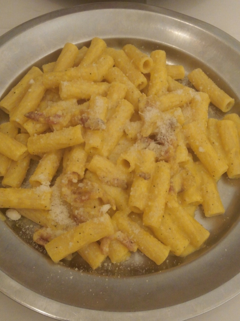 우리 집은 계란 파스타를 종종 해 먹는다. 까르보나라라고 하는데, 보통 까르보나라는 크림 파스타 종류를 생각하지만, 이태리에서 먹는 원래 까르보나라는 계란에 치즈, 후추, 베이컨을 넣어 크리미 하게 만든 소스에 먹는 파스타를 가리 킨다. 파스타 면도 고칼로리인데, 거기에 계란, 치즈, 베이컨이라니, 한 입 먹으면 느껴지는 고소하고, 묵직한 고칼로리의 맛에 광산에서 일하는 노동자들이 값싸고 쉽게 먹을 수 있는 고영양식이었다는 말을 바로 이해할 수 있다.