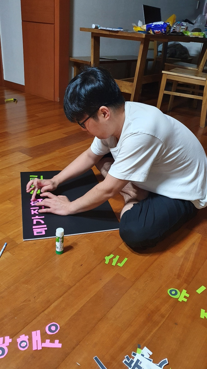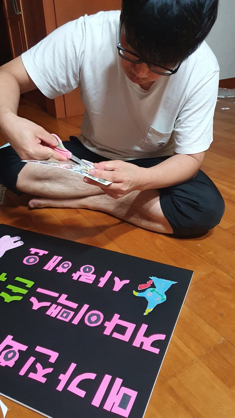 플랜카드를 만든 집이 있다는 말을 듣고는 급조한 우드락 응원판넬. 장혀. 근데 이게 뭔짓이여.
