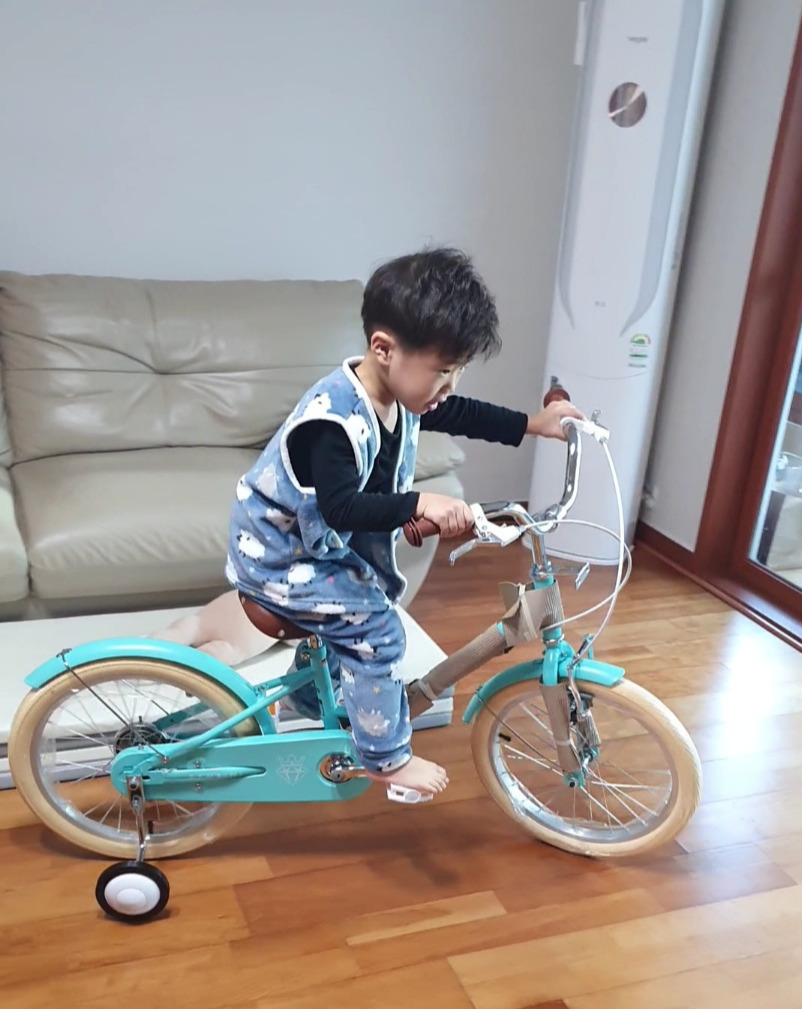 그러던 녀석에게 새 자전거가 생기다니, 내가 사준 건 아니다. 며칠 전 형아의 자전거를 얻어 타다가 빼앗기고는 불쌍한 표정을 지으며 쳐다보는 것이, 제 것이라고 우기고 싸우지 않는 것이 기특하기도 하고, 미안하기도 하고, 웃기기도 하여 사진을 찍어 시댁에 보냈는데, 그 표정을 보신 시부모님께서 당장 우리 애기 자전거를 사주겠다 하셨기 때문이다. 둘째는 할아버지와 똑 닮았는데 본인과 닮은 작은 사람이 속상해하는 모습에 단박에 넘어가신 듯했다. 한 집에 18인치 자전거를 두대 들이기가 뭣하여 둘째는 스트라이더라는 밸런스 바이크를 사 주어 둘이 번갈아 가면서 타게 할 요량이었는데 자전거가 있어야지 그걸로 성에 차겠냐는 어머님의 말씀에 우리 집에는 18인치 네 발 자전거가 두대가 생겼다.