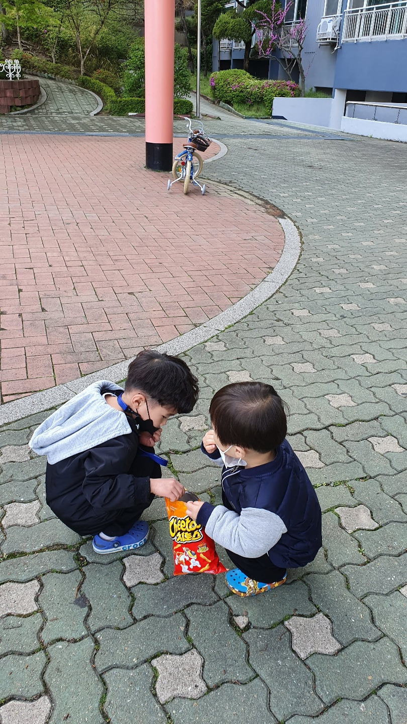 두 살 차이 나는 형제라서 더 물려받는 것이 많았다. 한복도 형아가 딱 맞게 사서 예쁘게 입다가 물려준 걸 받아 입었고, 킥보드도 작은 걸 새 거로 먼저 타서 쓰다가 익숙해질 무렵 동생에게 물려주고는 조금 더 큰 새 걸 사서 형아는 새것, 동생은 헌것을 타는 형편이었다. 겨울 부츠, 여름 장화 이런 시즌 제품들은 둘째에게 새 걸 사주기가 왜 이리 아까운지. 난 둘째를 정말 예뻐하고 사랑하는데, 어쩔 수 없는 짠순이 엄마이다. 유모차도 그렇고 집안에서 타는 붕붕이도 그렇고, 어떤 날은 양말까지 다 형아가 입고 쓰던 착장으로 등원한 적도 있으니, 그 뒷모습이 웃기기도, 미안하기도 하였다.