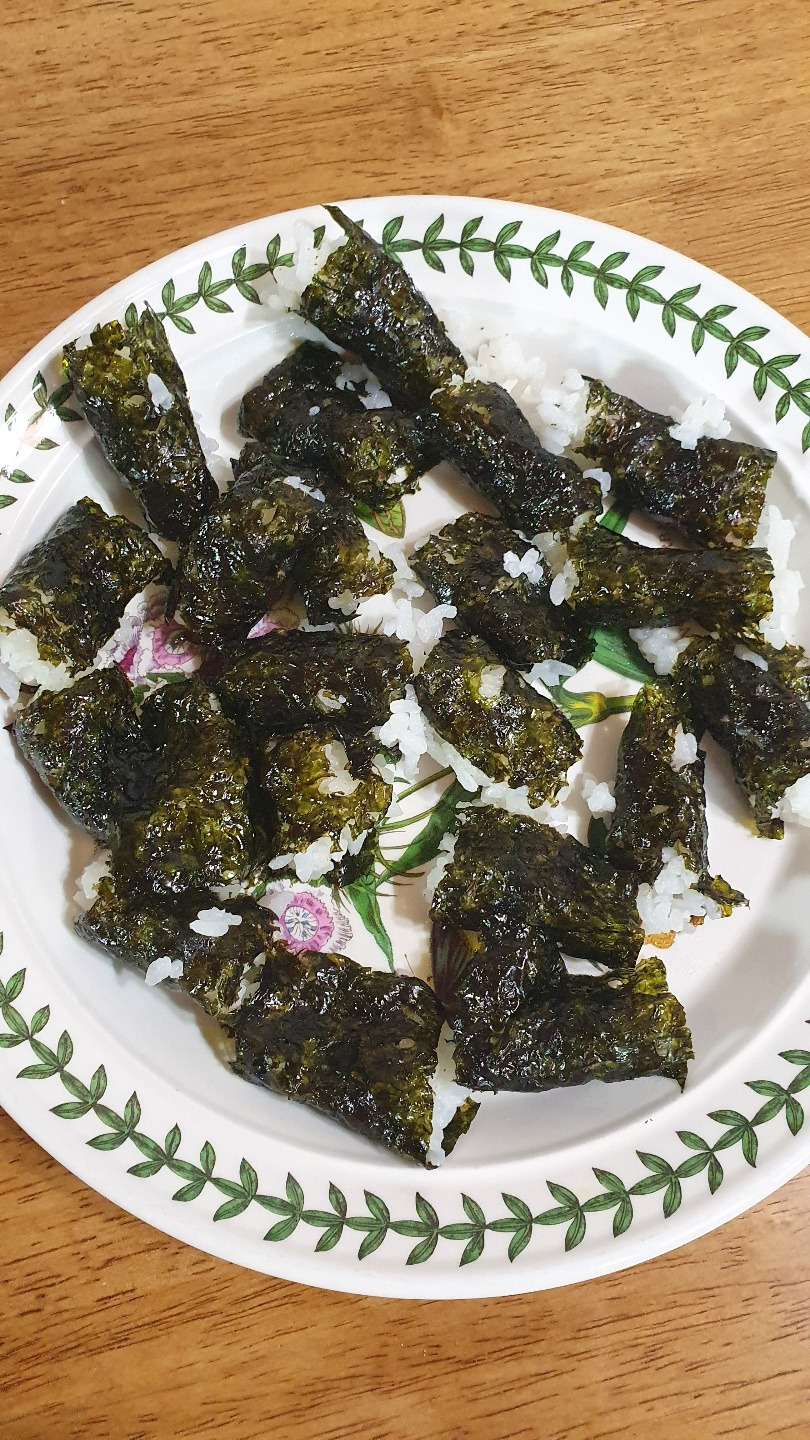 계란밥을 먹일까, 컵라면으로 대충 때울까 하고 있는데 둘째가 와서 김밥을 싸 달라고 한다. 엄마가 어제 싸준 김밥 맛있었다고. 그런 김밥은 최소한의 마음 준비와 재료 준비가 되어야 가능하다는 걸 아이는 아직 모른다. 그 김밥 말고 그냥 김 싸 먹으면 안 되냐고 하니 흔쾌히 그러자고 한다. 그러고 보니 코로나 가정보육 기간에 한동안 엄청 자주 먹었던 조미김 반찬을 요즘은 자주 내어주지 않은 것 같다. 이유는 딱 하나, 밥은 안 먹고 김만 먹어서. 아이들은 김을 좋아한다.
