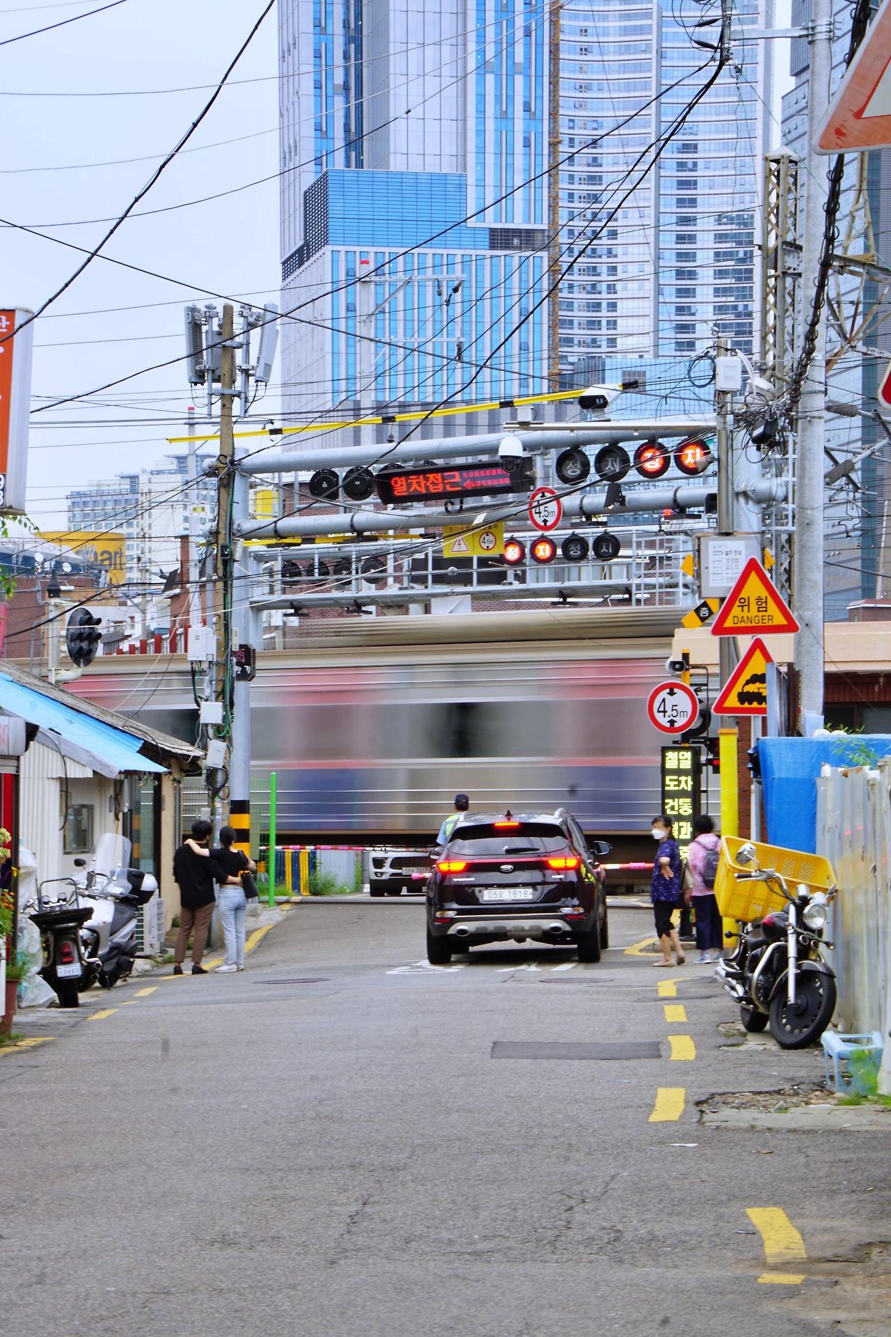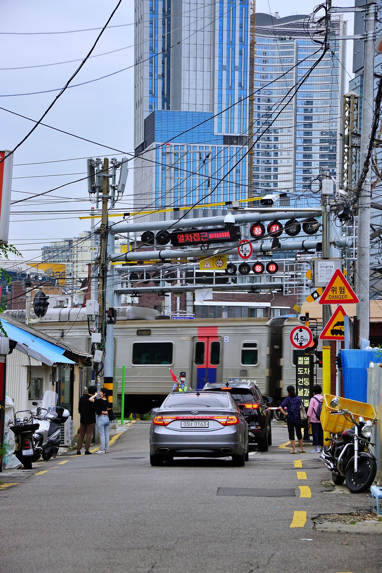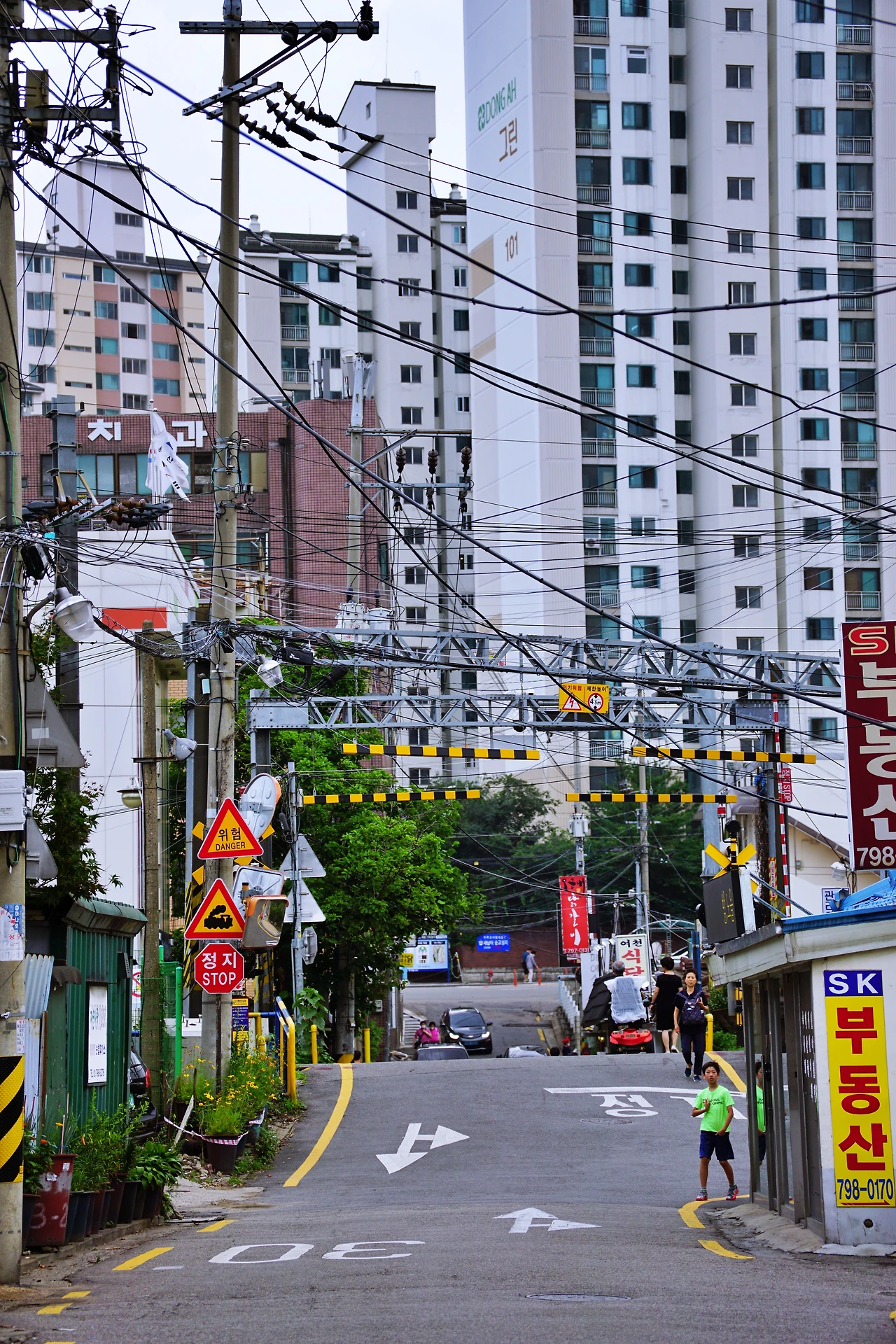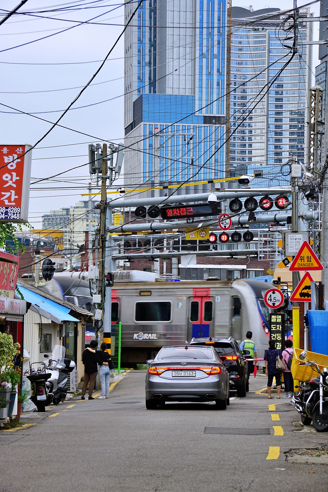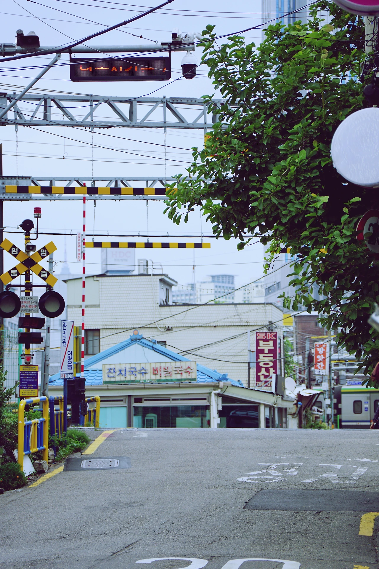 건널목으로 내려가 작은 동네의 정취를 느껴본다. 용산은 이렇게 도로 옆으로 열차가 지나가는 모습을 볼 수 있는 곳이 더러 있다. 한강대로 백빈건널목, 이촌역, 서빙고역 등이 있지만 이곳의 분위기가 단연 돋보인다. 자동 차단기와 선로, 전선이 주변 건물과 어우러지는 이곳의 모습은 자주 봐왔지만 여전히 낯설다.