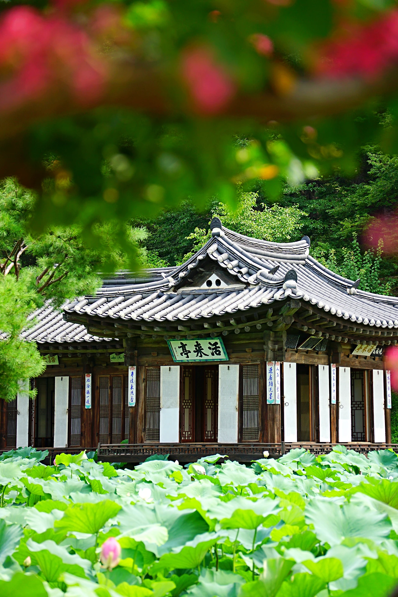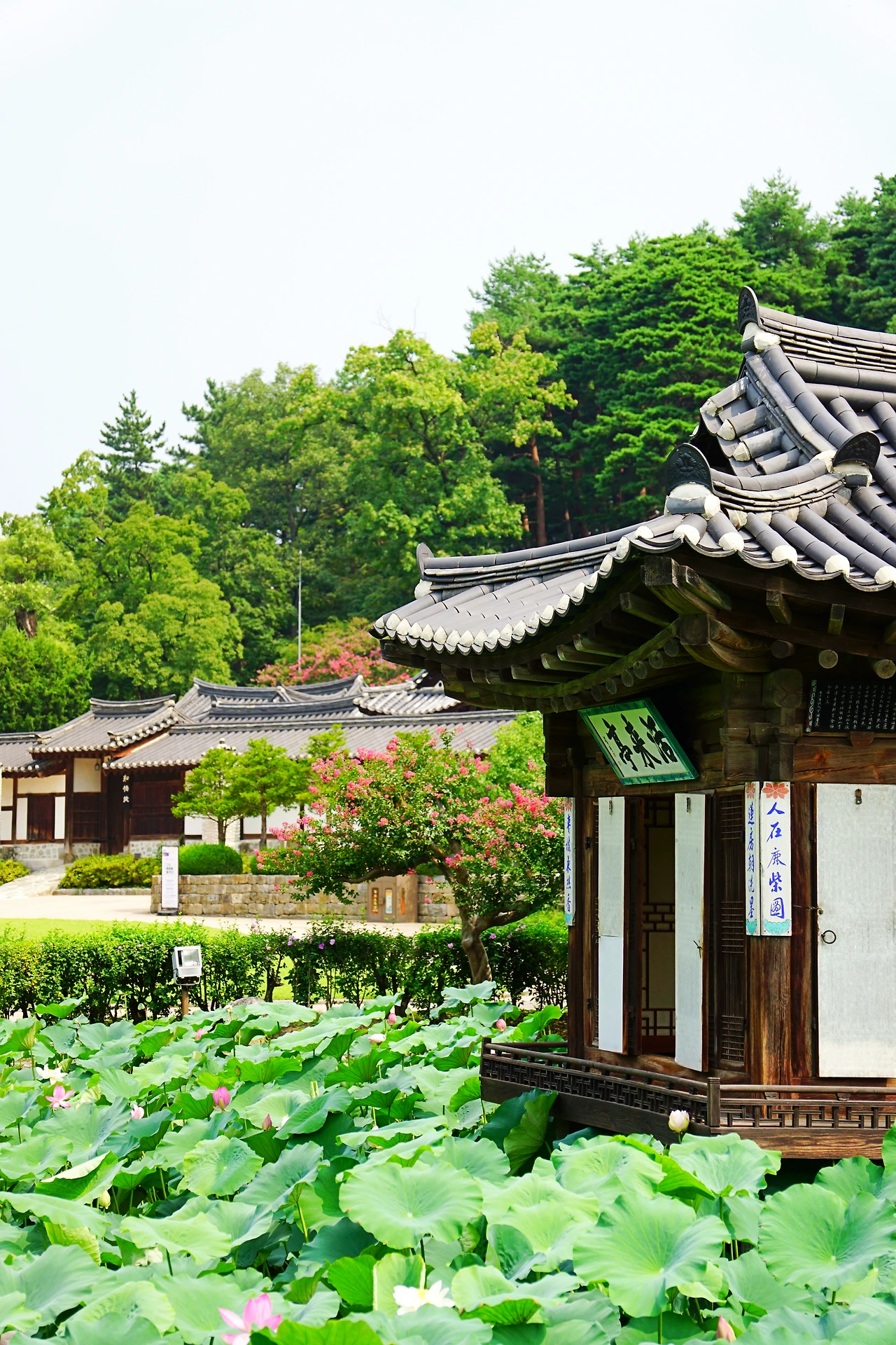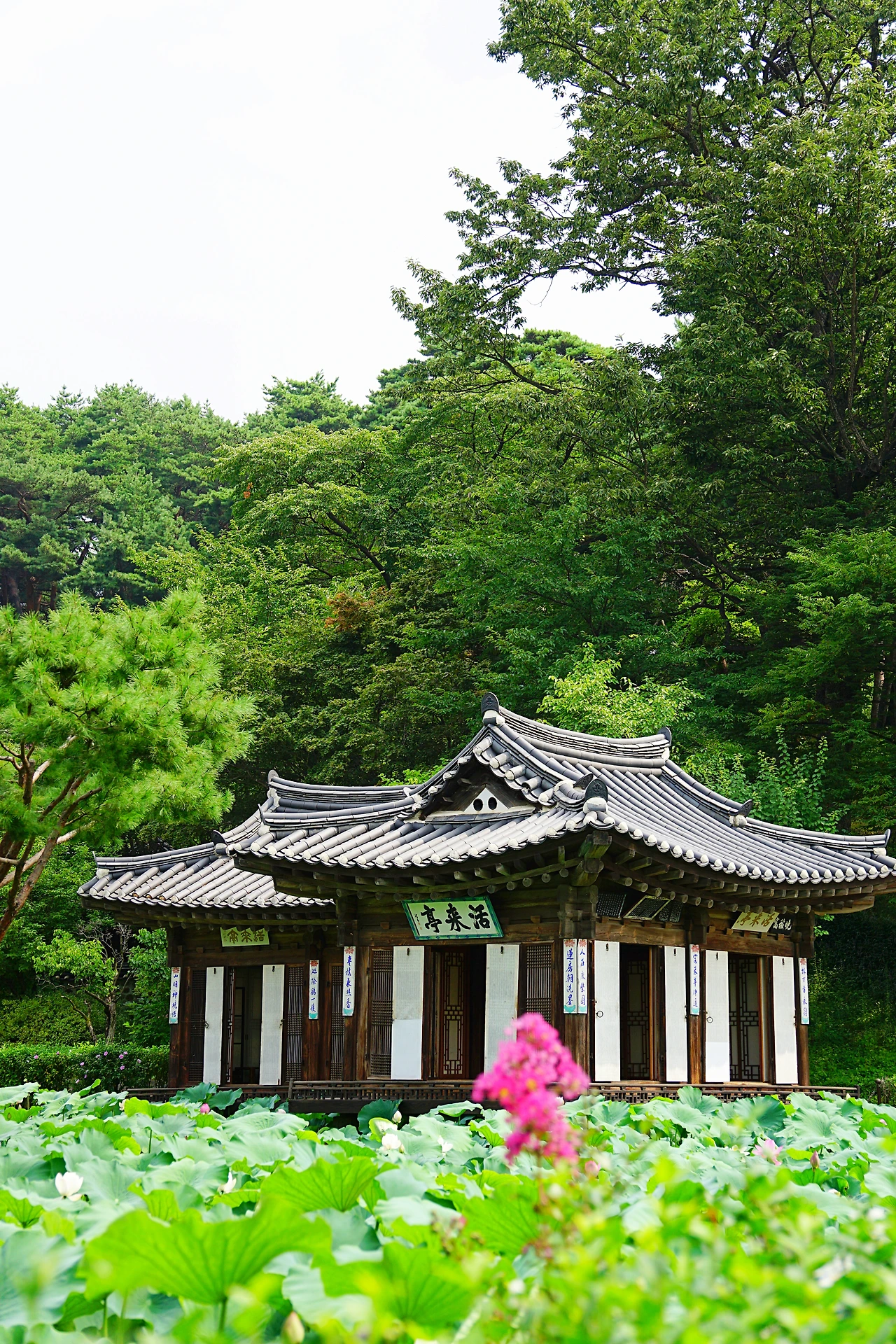 입구를 들어서면 바로 만날 수 있는 활래정은 수상 정원처럼 보였는데, 연못 가득 자라난 연잎과 피어난 연꽃이 너무도 아름다웠다. 특히 활래정의 열린 문 너머 보이는 풍성한 연잎은 물 위에 떠 있는 기분이 들게 했다. 양옥은 외부에서 건물을 바라볼 때 아름답도록 미적 설계가 되어 있고, 한옥은 집 안에서 바라보는 문 너머의 풍경을 중점으로 설계가 되어 있다고 하는데, 이 활래정을 보면 그 의미가 정확하게 와닿는다. 이번 여행에서 무엇이 가장 좋았는지를 꼽는다면 이 활래정을 처음 만난 순간이다. 매년 여름마다 찾고 싶은 마음도 들었다. 경복궁보다 비싼 입장료(5,000원)지만 전혀 아깝지 않았다. 관람 시간 동안 사람을 거의 보지 않을 정도로 고요했는데, 고요한 환경은 주변을 더 집중할 수 있게 했다.