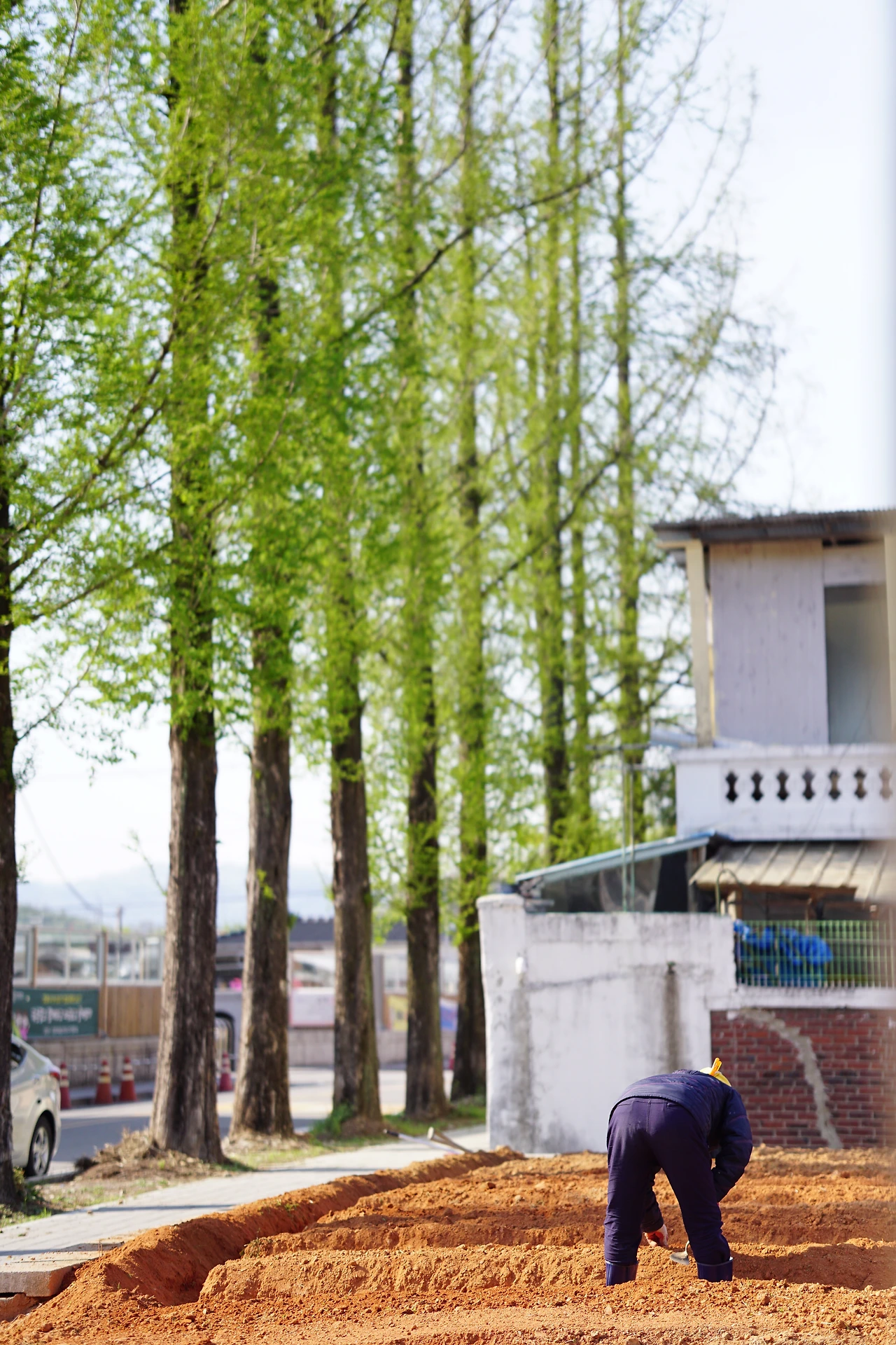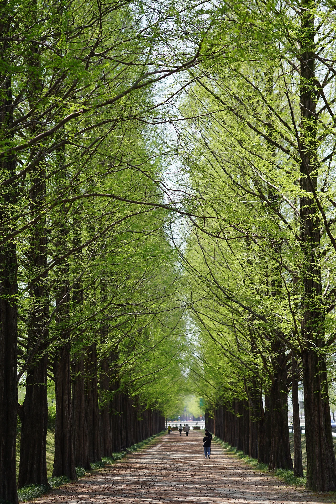 언제부터인가 입장료를 받는 곳이 되었는데, 매표소 입구에서 보는 광활함이 더 아름다운 곳이다. 아직 잎이 다 자라지 않아 가장 많은 이들이 찾는 아름다운 때는 아니었을 수 있지만 일정하게 심어진 나무의 간격의 빈틈없음을 상쇄하는 빈 가지 사이로 보이는 하늘빛은 색다른 미감이다.