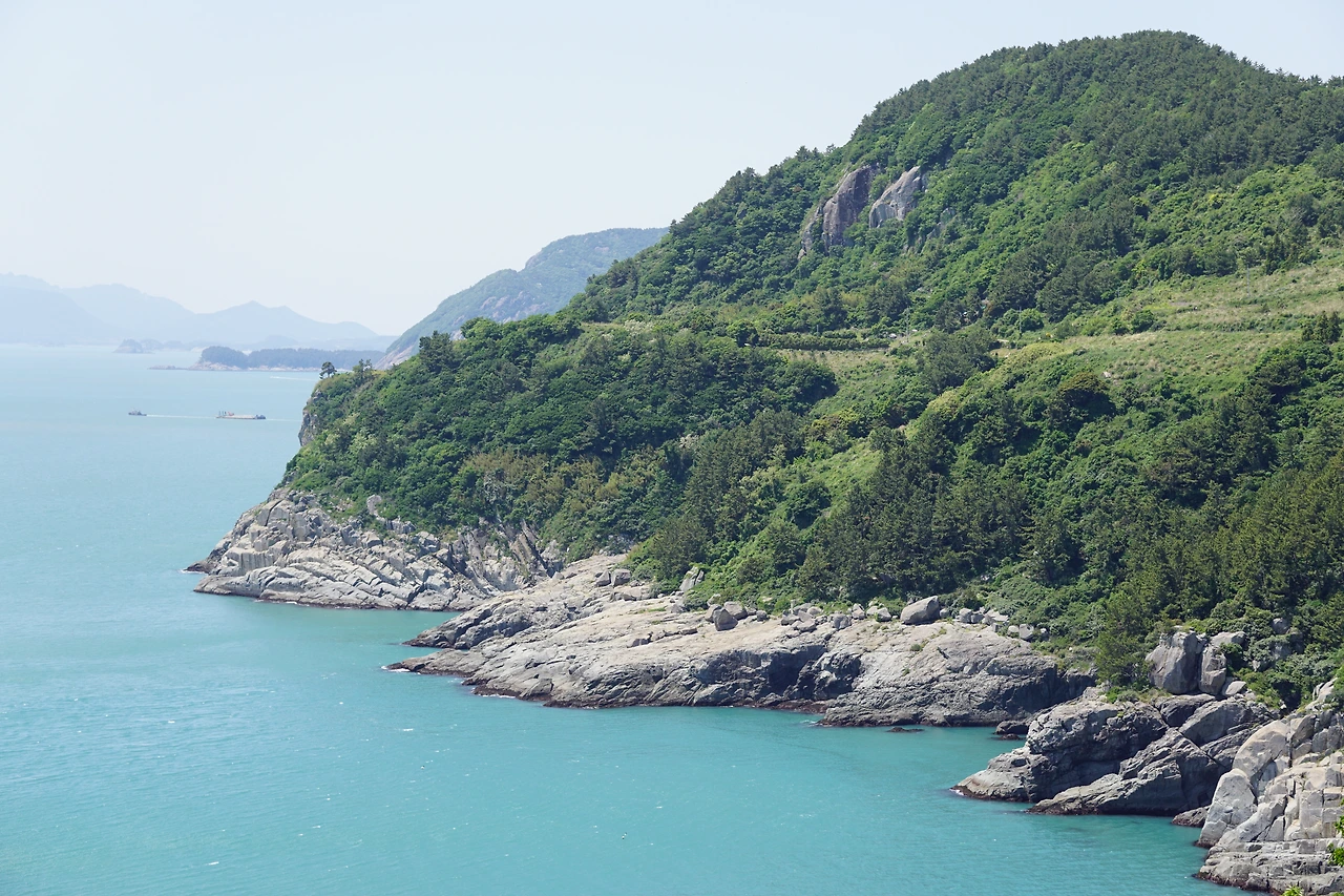 완만한 오르막과 내리막을 반복하다 보니, 어느새 앞서 간 사람들의 흔적마저 사라져 오롯이 온 숲이 내 것이 된 듯한 기분이 든다. 우거진 나무숲 사이로 저 멀리 옥빛의 바다가 보인다. 송골송골 맺힌 땀과 배낭의 무게는 잊은 지 오래. 숲으로 들어갈수록 감각이 살아나고 있었다. 높이 자란 나무들의 세상에 동화되고 싶어 나무의 냄새를 맡고, 손 끝으로 흙을 만져본다. 숲 사이로 들어오는 햇살 조각은 숲의 끝자락을 기대하게 했다. 드넓게 펼쳐질 바다와 세월의 흔적이 느껴질 기암괴석을.