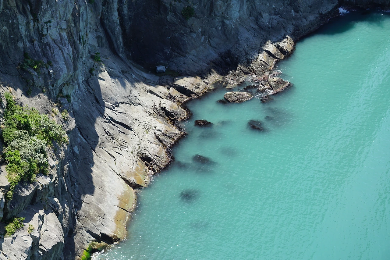 걷고 걸어 '미역 널방'에 도착한다. 절로 감탄이 나오는 풍경이 눈앞에 나타난다. 까마득한 절벽 아래는 옥빛의 바다가 대단한 존재감을 드러내고 있었다. 먼바다를 볼 수 있는 망원경으로 바다를 살피다 거짓말처럼 상괭이가 수면 위로 잠시 나타난다. 믿기지 않을 만큼 모든 상황이 완벽해지는 순간이었다.