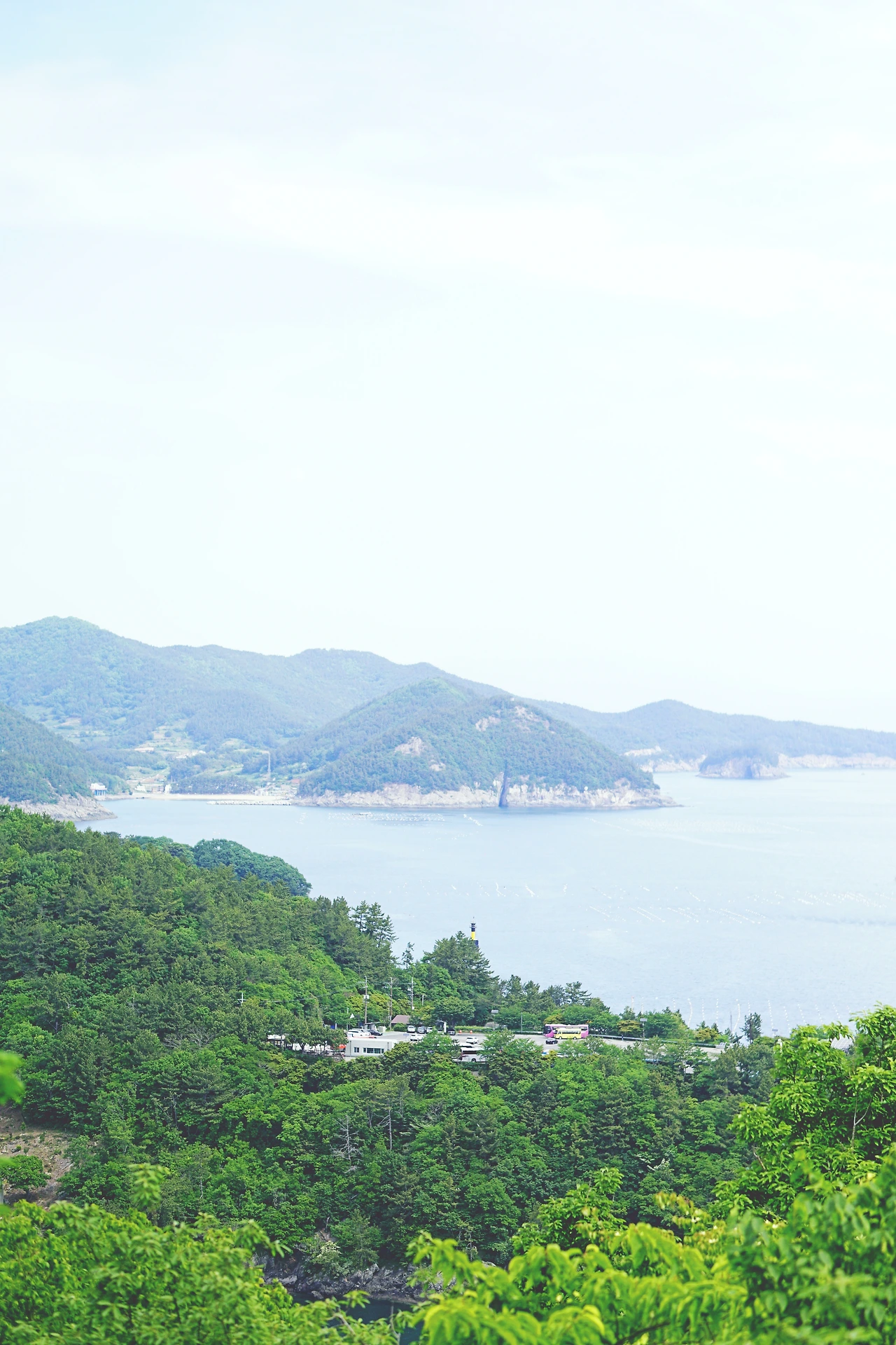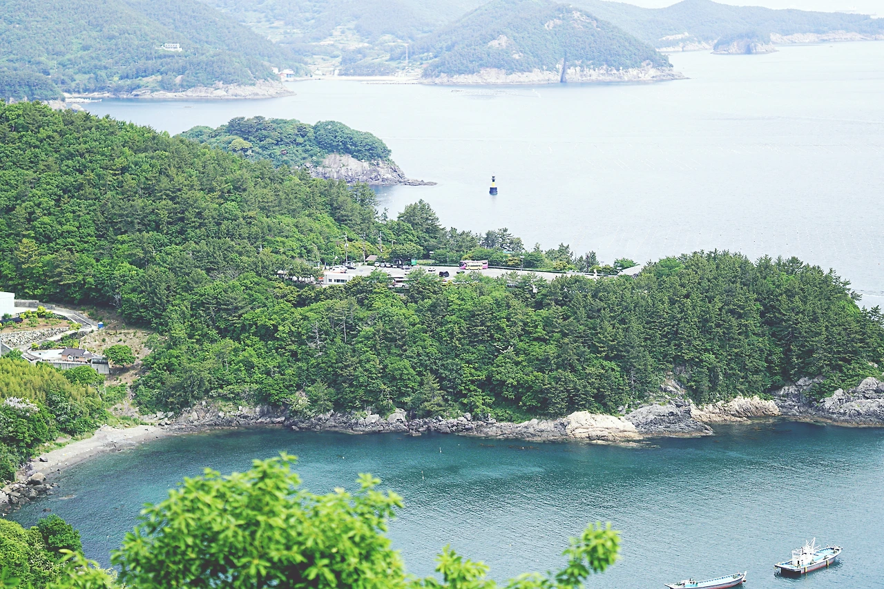 시선을 좌로 옮기니 산길을 걸으며 내내 그리던 '그곳', 경남 남해가 보인다. 어느 가을날, 노랗게 익은 금빛 벼 사이로 난 도로를 달리던 남해에서의 여행길이 떠오른다. 미국 마을에 위치한 숙소 앞에서 본 석양이 지던 논길을. 다랭이 마을을 보며 보성 녹차밭을 떠올렸던 순간을, 한산한 차도, 은모래비치의 적막함을. 죽방렴을 보며 현대 사회임을 잊었던 순간을. 보리암과 금산에서 내려다본 남해의 바다를.