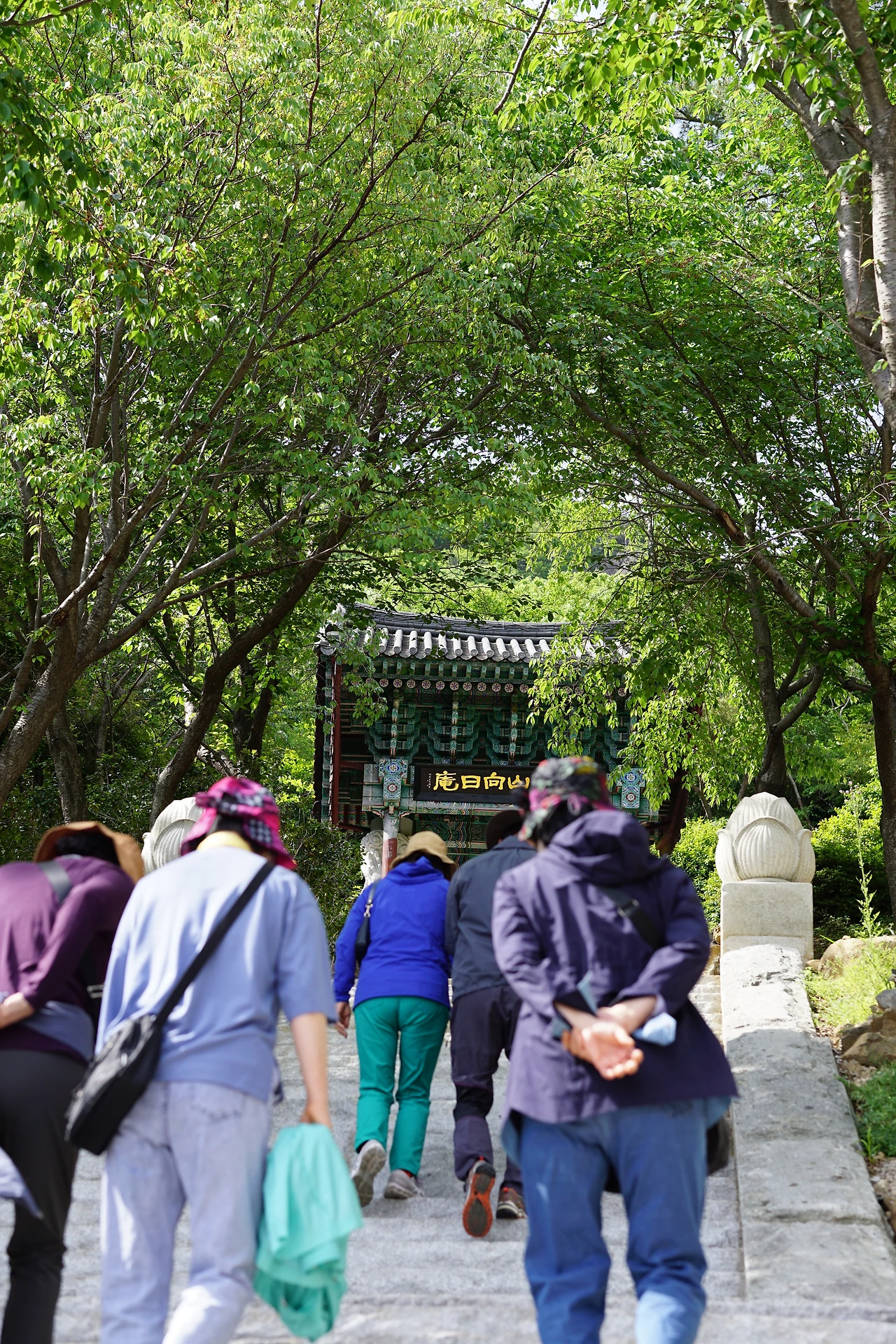 어느덧 향일암 주차장에 내려 사찰을 향해 걸어 본다. 몸이 뒤로 젖힐 만큼 가파른 경사는 다리와 심장을 힘들게 만들었지만 고지에서 내려다보는 '그곳'에 대한 기대감을 갖게 했다. 매표소를 지나 계단길을 따라간다. 일주문은 왜 이리 멀게 느껴지는지. 도통 평지라는 것이 나타나지를 않는다. 일주문을 지나도 계단은 계속된다. 옷이 흠뻑 젖을 정도로 땀을 흘려 입고 있던 겉옷을 벗자 때마침 바람이 불어오며 열기를 식혀준다. 배낭에 넣어둔 물을 꺼내 목을 축이니 주변을 돌아볼 여유가 생긴다.