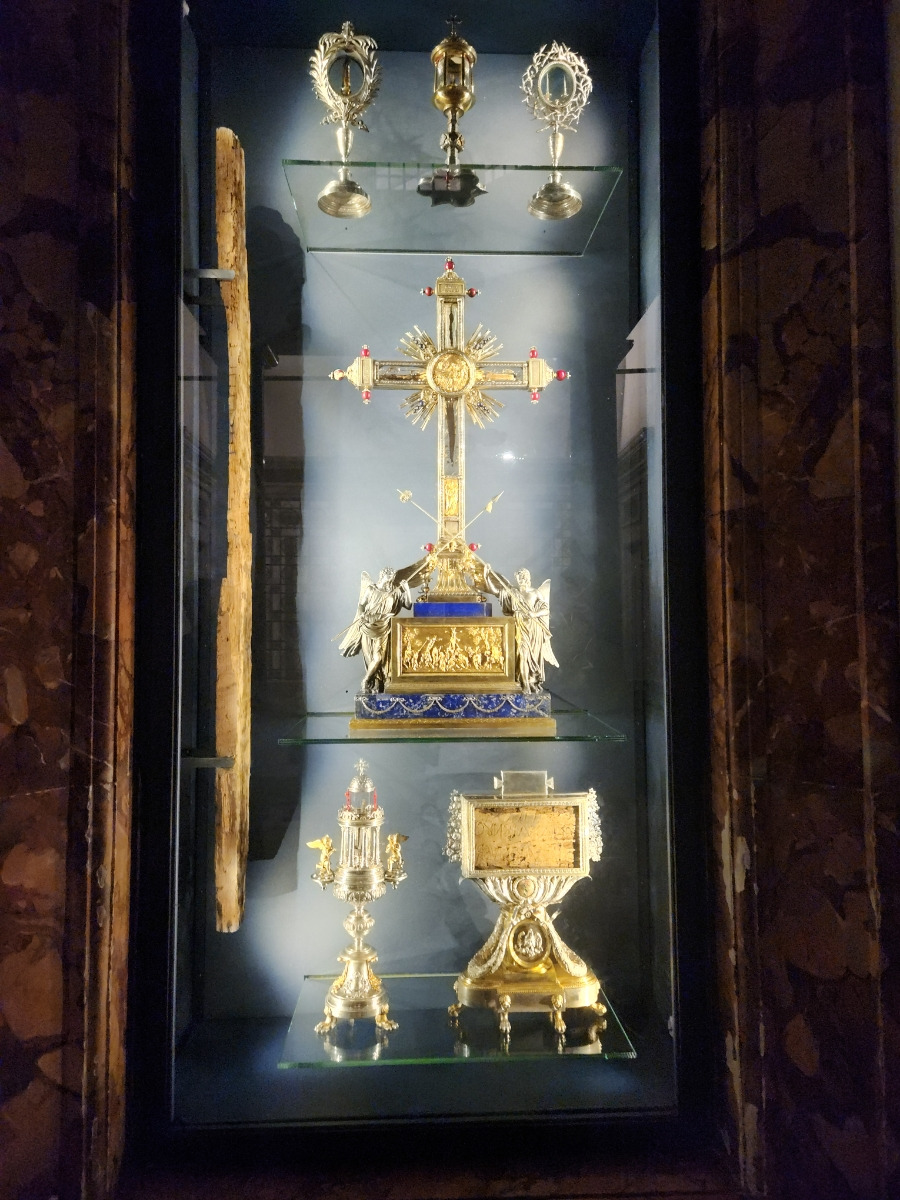 이 성당은 콘스탄티누스대제의 어머니인 성녀 헬레나와 관계가 있는 성당입니다. 그녀가 예루살렘에서 가져온 그리스도의 십자가 조각, 못 등 예수님의 수난 물품이 전시되어 있습니다. 도마의 손가락이 보관되어 있다는 점이 참 인상적입니다.